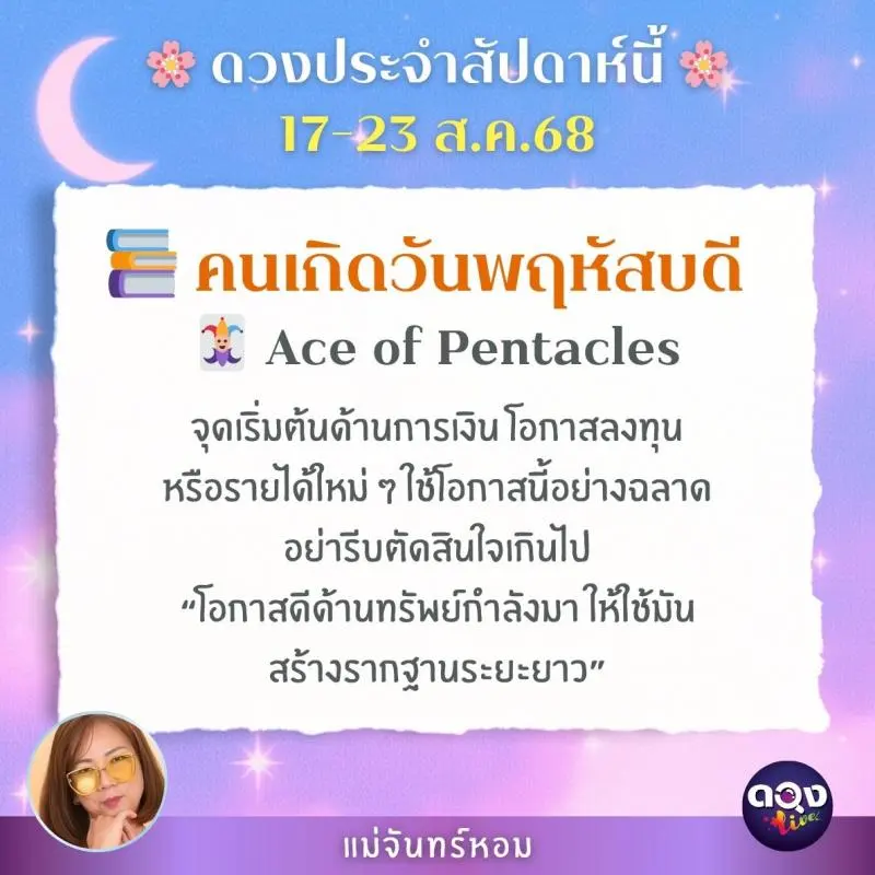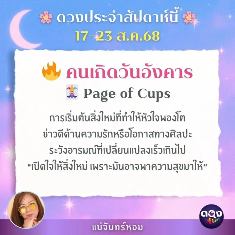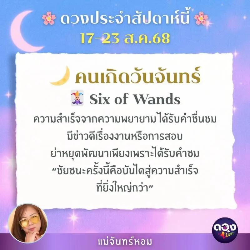 ดวงรายวันเกิด ประจำวันที่ 17–23 สิงหาคม 2568 โดย แม่จันทร์หอม