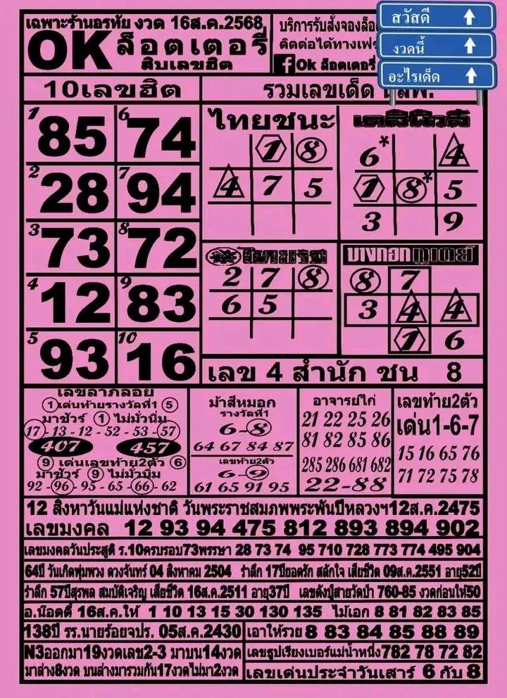รวมเลขเด็ด 2 สำนักดัง ok ลอตเตอรี่10 เลขเด็ด กับหวยมิสเตอร์บอล งวดวันที่ 16 สิงหาคม 2568