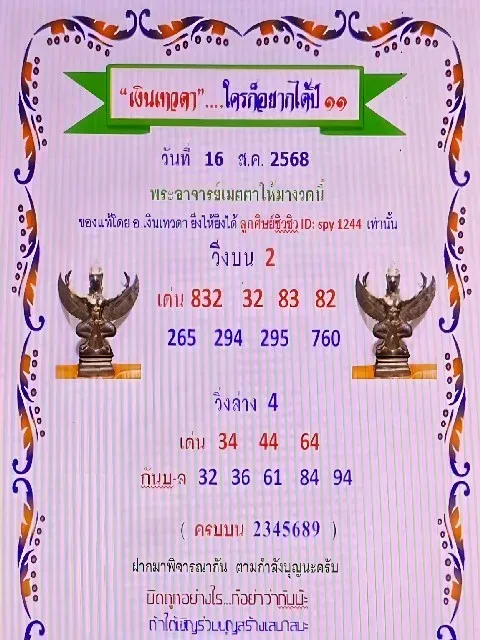 เลขเด็ด เลขมาเเรง เลขดัง "รวมหวยเด็ดสำนักดัง vol.30" งวดวันที่ 16 สิงหาคม 2568