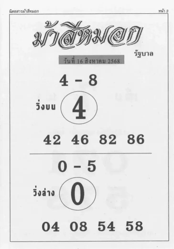 แนวทางเลขเด็ด ม้าสีหมอก งวดวันเสาร์ที่ 16 สิงหาคม 2568