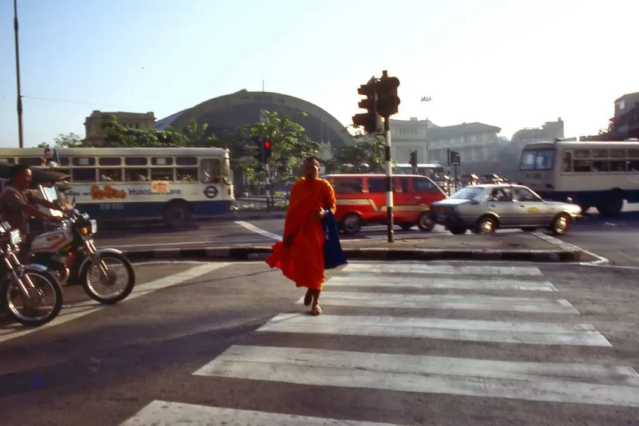 ในช่วงทศวรรษ 2520–2530 กรุงเทพมหานครยังคงเต็มไปด้วยกลิ่นอายความคลาสสิกของเมืองหลวงเก่า ภาพหนึ่งที่สะท้อนวิถีชีวิตและบรรยากาศของยุคนั้นได้อย่างชัดเจน คือภาพถ่ายเมื่อปี พ.ศ. 2528 ที่บันทึกพระภิกษุรูปหนึ่งกำลังเดินข้ามถนนด้านหน้าสถานีรถไฟหัวลำโพง ท่ามกลางการสัญจรของรถราบนท้องถนน