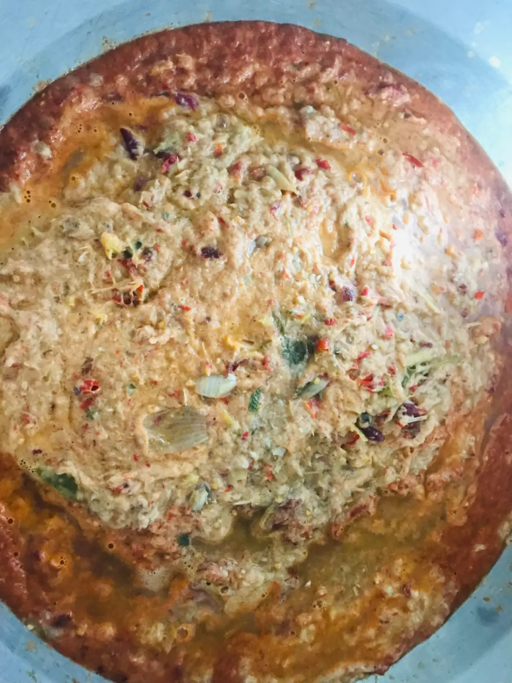 ในการทำนั้นสิ่งที่เราต้องพยายามคือจะแยกเนื้อออกจากก้าง ทั้งก้างของปลากระดี่ด้วย ซึ่งยากมากก้างเยอะ จะเอาเฉพาะในส่วนของก้างเท่านั้น อย่างอื่นนั้นไม่ต้องสนใจ เมื่อนำเนื้อปลาออกแล้วก็จะนำไปปั่นกับกระชาย หอมและกระเทียม หอมมากหลังจากที่ปั่นเรียบร้อย จากนั้นำไปไว้ในหม้อเตรียมในการต้มอีกวันหนึ่งกับเลือดและเท้าของไก่ ที่เรียกว่าเล็บมือนาง