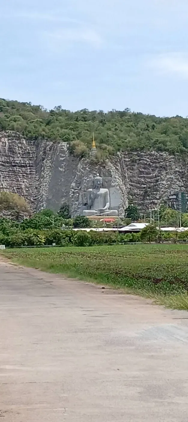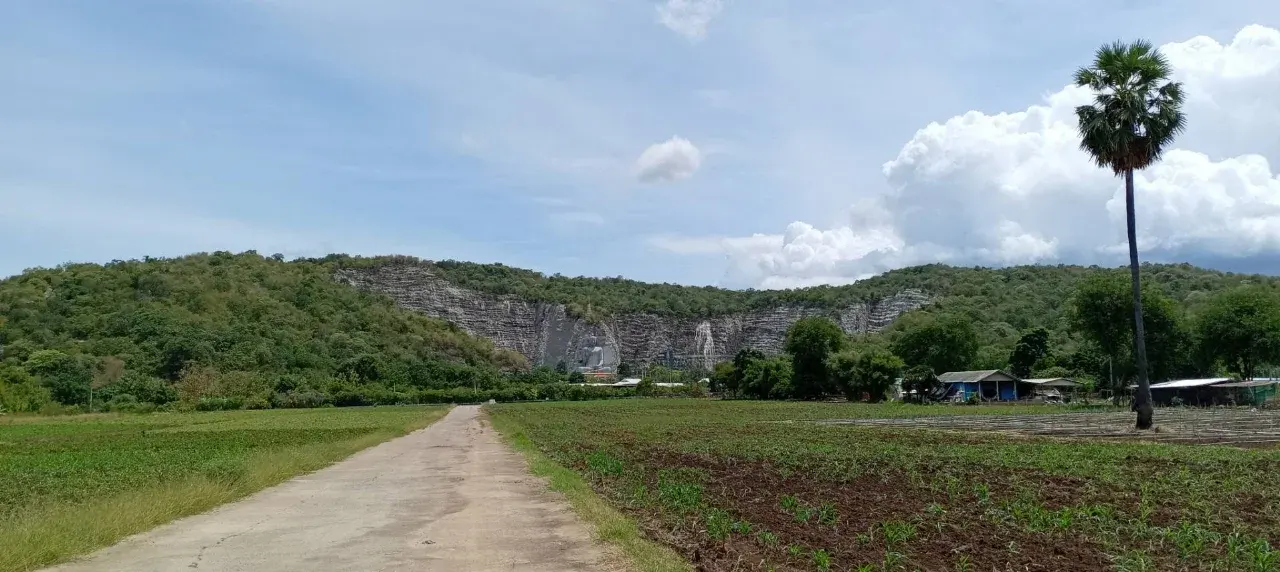 หน้าผาที่พระพุทธปุษยคีรีศรีสุวรรณภูมิสลักไว้ ได้ทำให้ทัศนียภาพโดยรอบมีความงดงามตระการตา