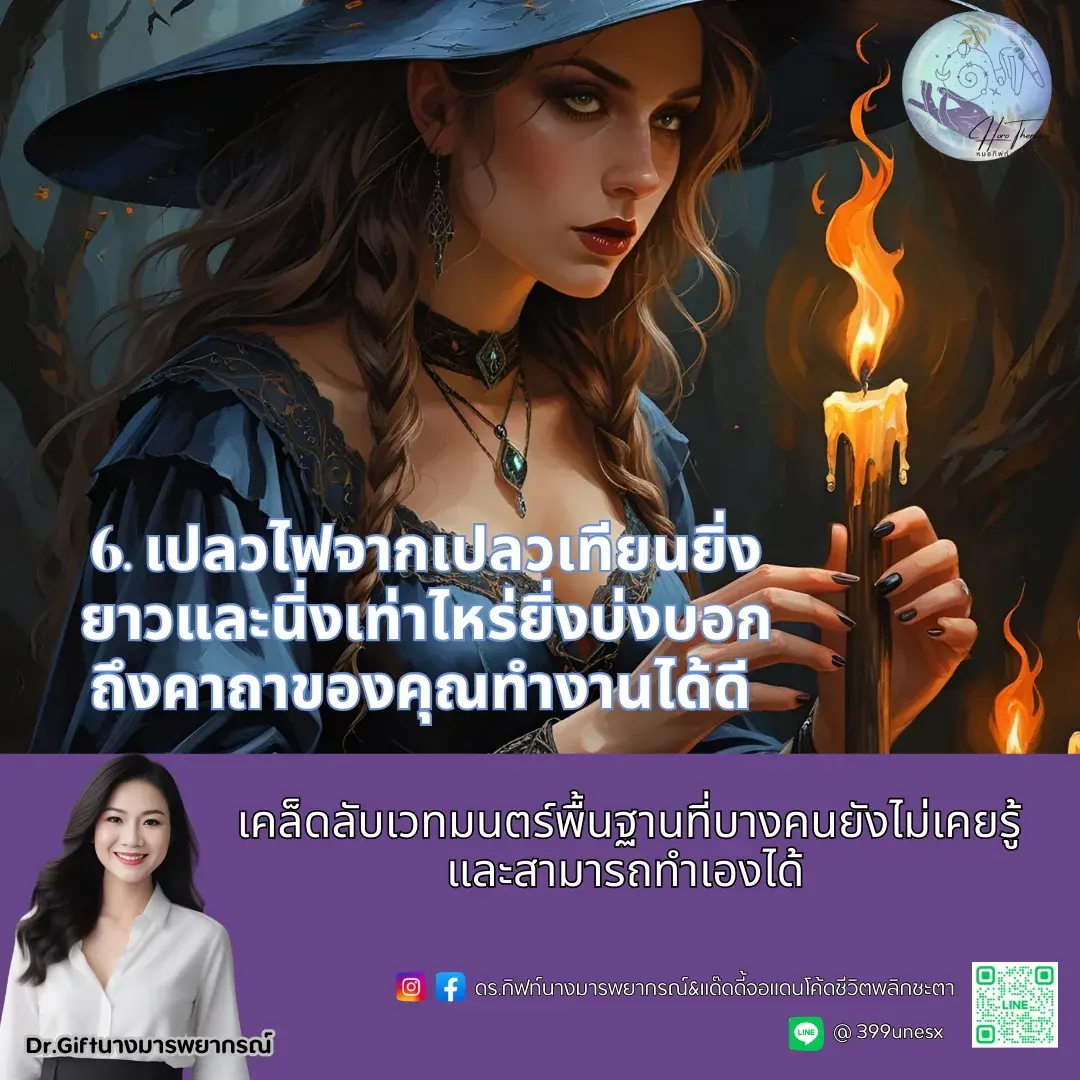6. เปลวไฟจากเปลวเทียนยิ่งยาวและนิ่งเท่าไหร่ยิ่งบ่งบอกถึงคาถาของคุณทำงานได้ดี