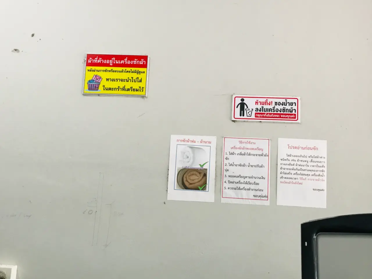 วิธีการในการซักนั้นหากว่าเรานั้นไม่เข้าใจ เราสามารถที่จะทำได้ด้วยการอ่านขั้นตอนในการซักว่าทำอย่างไร มีการเขียนและติดไว้หมด ไม่ต้องถามใครเลย ไร้แม้เสียงของการพูดคุยสักนิดเดียว