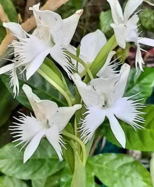 ลักษณะดอกมีสีขาว มีกลิ่นหอมเย็นๆ มีกลิ่นหอมตอนช่วงหัวค่ำ เป็นกล้วยไม้ดินที่มีเสน่ห์เฉพาะตัว ลำต้นมีความสูงถึง 1.5 เมตร จะมีหัวใต้ดินขนาดใหญ่ ใบจะเรียงตัวเป็นวงรอบลำต้นดูสวยงาม ขณะที่ดอก จะมีสีขาวอมเขียวหรืออมเหลืองก็ส่งกลิ่นหอมฟุ้งไปทั่ว