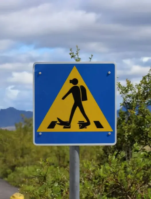 หนึ่งในสถานที่ที่ทำให้ป้ายนี้มีชื่อเสียง คือ Silfra (ซิลฟรา) รอยแยกน้ำใสในอุทยานแห่งชาติ Thingvellir ประเทศไอซ์แลนด์ ที่ขึ้นชื่อว่าเป็นหนึ่งในสถานที่ดำน้ำที่สวยที่สุดในโลก นักดำน้ำจากทั่วทุกมุมโลกต่างหลั่งไหลมาที่นี่เพื่อสัมผัสประสบการณ์ดำน้ำระหว่างรอยแยกของแผ่นเปลือกโลกอเมริกาเหนือและยูเรเซีย ความพิเศษคือ น้ำที่ใสจนมองเห็นได้ไกลกว่า 100 เมตร ทำให้ที่นี่เป็นสวรรค์ของนักดำน้ำตัวจริง แต่ด้วยจำนวนผู้คนที่มาเยือนจำนวนมาก เส้นทางบางส่วนจึงเชื่อมต่อกับถนนที่ใช้สัญจร และนั่นคือเหตุผลที่ทำให้เกิดป้ายเตือน “ทางข้ามนักดำน้ำ” ขึ้นมา