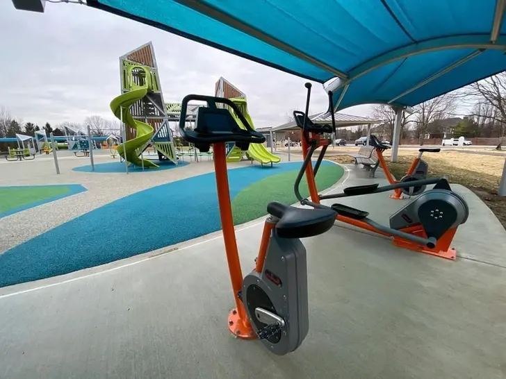 4. สวนสาธารณะของฉันติดตั้งอุปกรณ์ออกกำลังกายกลางแจ้งที่หันหน้าไปทางสนามเด็กเล่น เพื่อจะได้เห็นความเป็นไปของเด็ก ๆ ในขณะที่เราออกกำลังกาย