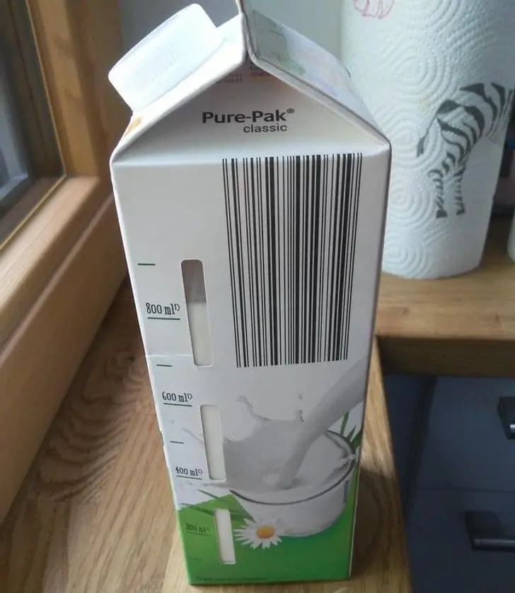6. นมกล่องนี้แสดงให้คุณเห็นว่ายังมีนมอยู่ข้างในเหลืออีกเท่าไร
