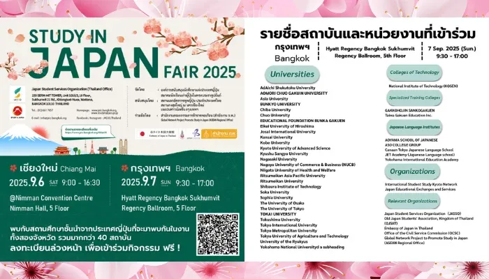 STUDY IN JAPAN FAIR 2025 โอกาสเจอสถาบันจากญี่ปุ่นกว่า 40 แห่ง ตัวจริงเสียงจริง 🇯🇵