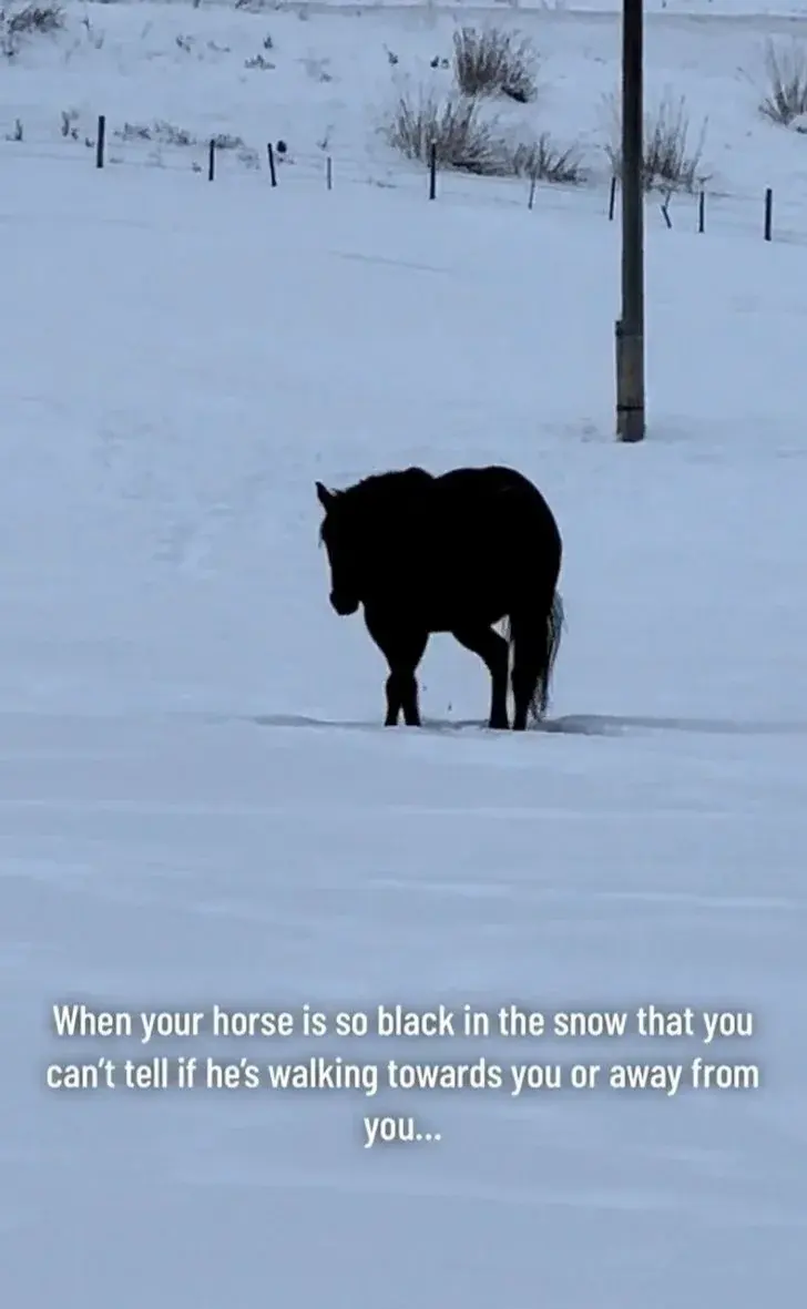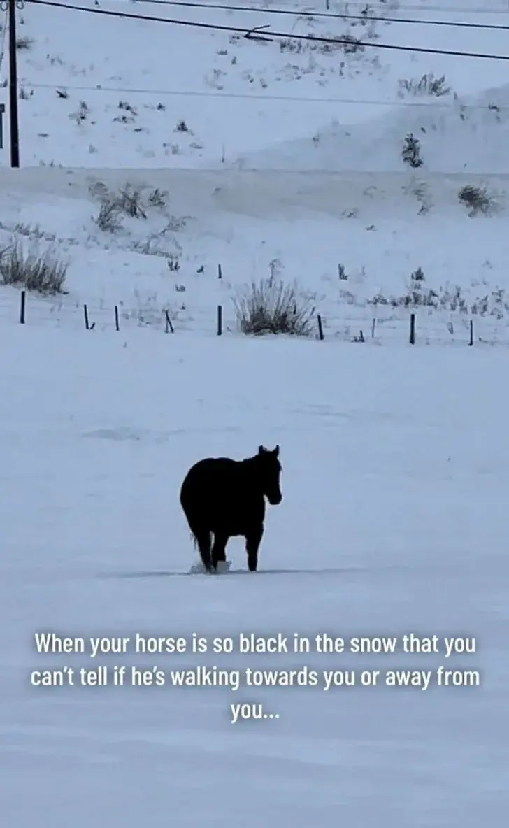 มีคนสังเกตละเอียดถึงขั้นไปดูรอยกีบม้าที่ทิ้งไว้บนหิมะ แล้วบอกพร้อมยืนยันว่า ม้าตัวนี้เดินออกไปแน่นอน สุดท้ายเจ้าของคลิปก็ออกมาเฉลยเองค่ะว่า ม้าของเธอ “เดินออกไป” จริง ๆ
