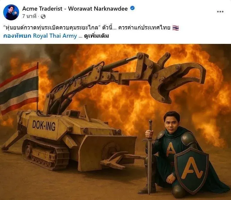 เพราะเจ้าตัวประกาศจับมือกับแฟนคลับ ACT Warriors ควักเงินสด 100 ล้านบาท จัดซื้อหุ่นยนต์กวาดทุ่นระเบิดรุ่น DOK-ING MV-4 สุดไฮเทค บินตรงจากโครเอเชีย มอบให้กองทัพไทยไว้ใช้เคลียร์พื้นที่เสี่ยงชายแดน