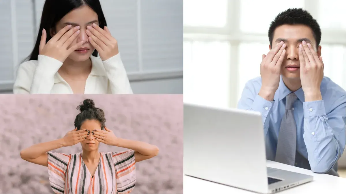 2.ประคบดวงตาด้วยฝ่ามือ (Palming) ไออุ่นจากฝ่ามือจะช่วยคลายความตึงของกล้ามเนื้อตา และ เพิ่มความผ่อนคลาย