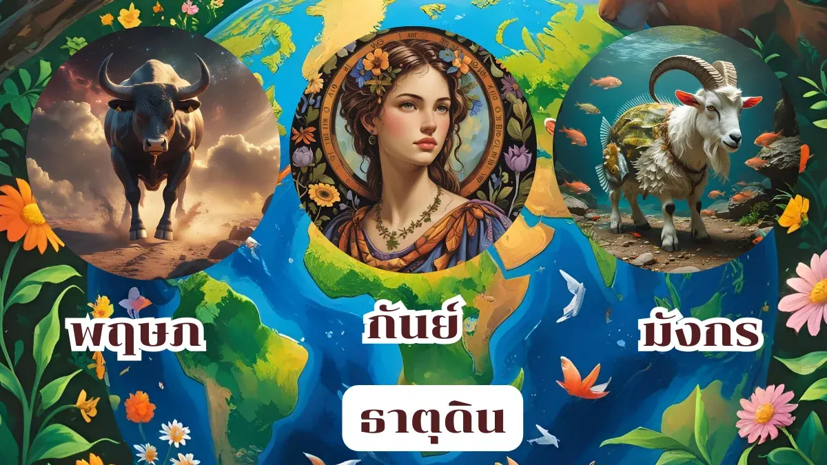 ธาตุดิน ประกอบด้วย ราศีพฤษภ ราศีกันย์ และราศีมังกร