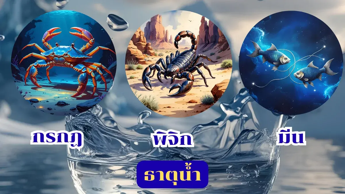 ธาตุน้ำ ประกอบ ราศีกรกฏ ราศีพิจิก และราศีมีน