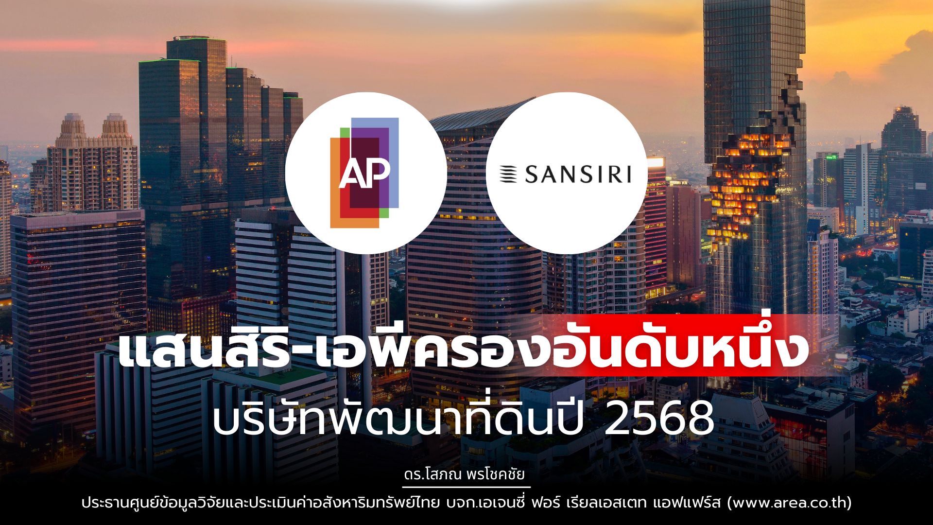 แสนสิริ-เอพีครองอันดับหนึ่งบริษัทพัฒนาที่ดินปี 2568