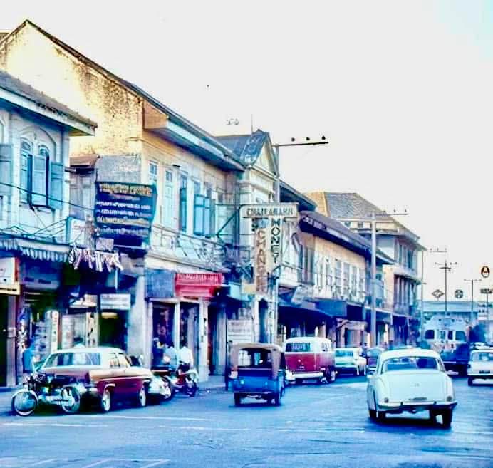 ภาพถ่ายในปี พ.ศ. 2511 บันทึกบรรยากาศของ ถนนเจริญกรุง–สุรวงศ์ ซึ่งถือเป็นหนึ่งในย่านสำคัญของกรุงเทพฯในอดีต ย่านนี้ไม่เพียงเป็นศูนย์กลางการค้า หากยังเป็นพื้นที่ที่รวบรวมสถานที่ทางการทูตและหน่วยงานต่างชาติไว้มากมาย