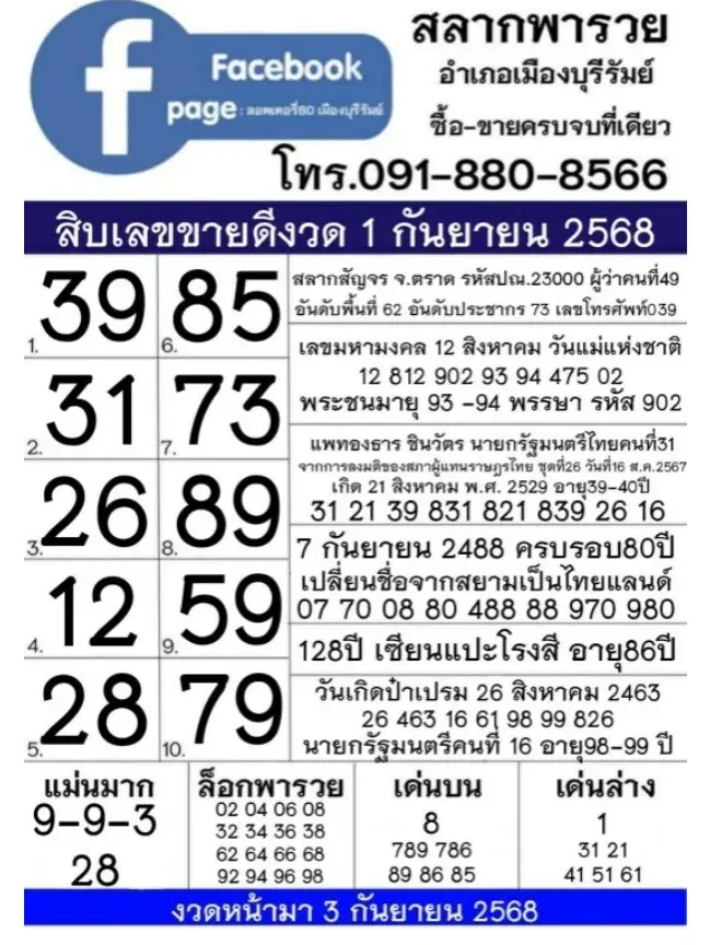 สำหรับหวยในงวดนี้ ออกวันที่ 1 กันยายน 2568 เซียนหวยและบรรดาคนรักตัวเลขทั้งหลาย ได้โปรดมารวมตัวกันทางนี้ เพราะเรามีแนวทางเลขเด็ดดีๆ หวยดังจากสำนักต่างๆ มาจากทั่วฟ้าเมืองไทย ที่ไหนเขาบอกว่าดี หรือมีเลขเด็ดเจ๋งๆ เลขดังสถิติแม่นๆ ที่เรียกว่าเข้าแทบทุกงวด เราก็ไม่รอช้า รีบคว้าเอามาฝากคุณทันที เพื่อเอาไว้ใช้พิจารณาในการเลือกซื้อหวยต่อไป