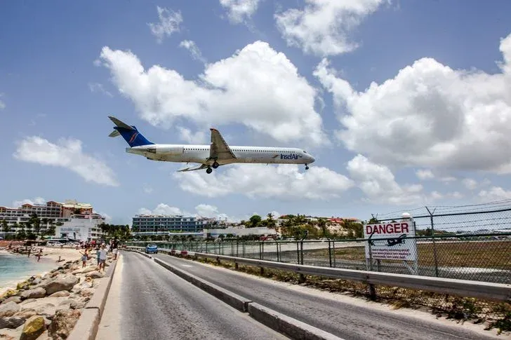 4. สนามบินปรินเซสจูเลียนา ( Princess Juliana International Airport ) ตั้งอยู่บนเกาะเซนต์มาร์ติน ( Saint Martin )