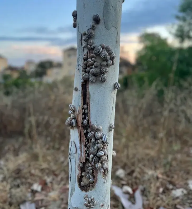 2. เหล่าฝูงหอยทากที่มารวมกลุ่มบนต้นไม้