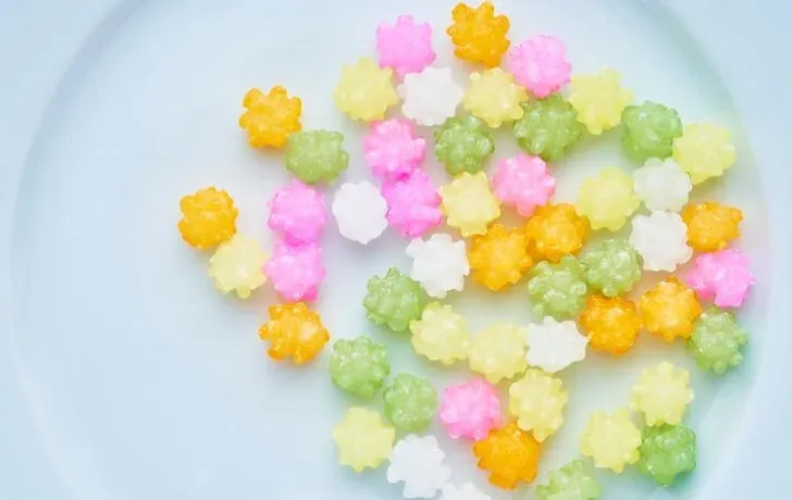 อีกชนิดที่หลายท่านคงเคยเห็นคือ “คมเปโตะ” ลูกกวาดน้ำตาลหลากสี ขนมเล็ก ๆ ที่ดูเหมือนจะธรรมดา แต่กลับมีความหมายมาก เพราะในอดีตน้ำตาลเป็นของหายาก มีราคาสูง คมเปโตะจึงถือเป็นของล้ำค่า ถึงขนาดที่ราชวงศ์ญี่ปุ่นนำไปใช้ในพระราชพิธีสำคัญ โดยบรรจุในกล่องเงินประดับดอกเบญจมาศ มอบเป็นของที่ระลึกแก่แขกผู้มีเกียรติ
