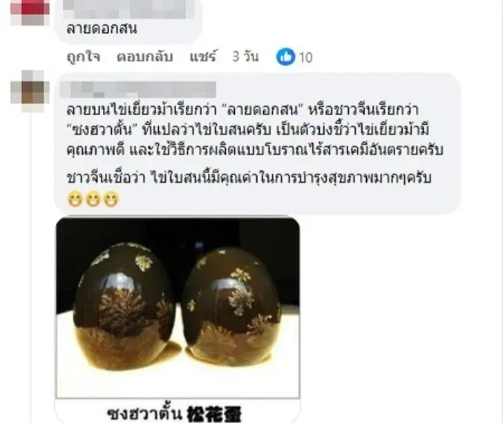 สำหรับท่านใดที่มีไข่เยี่ยวม้าลายดอกสนแบบนี้ ไม่ต้องกังวลค่ะ สามารถบริโภคได้ตามปกติ และถือเป็นของหายาก นับเป็นประสบการณ์ดี ๆ ของคนชอบทานไข่เยี่ยวม้าเลยทีเดียว