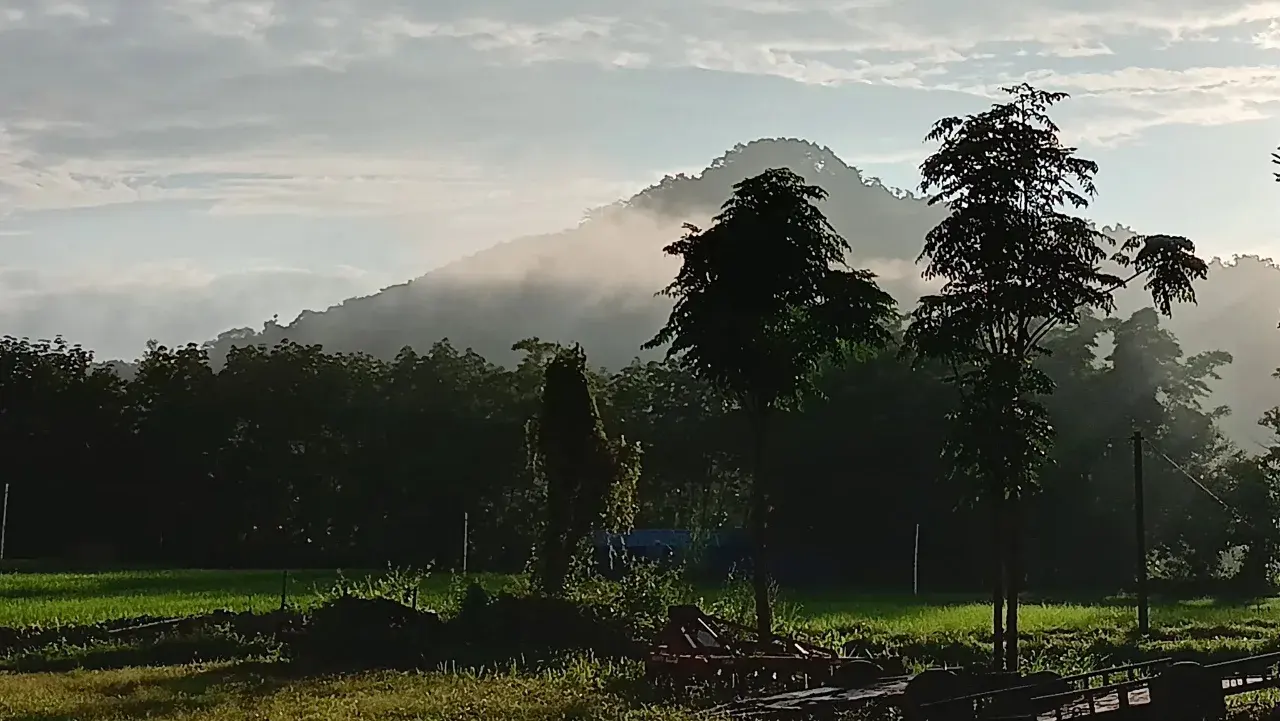 จากนั้นเราเดินผ่านทุ่งนา ที่มองเห็นทิวเขา ไม่จำเป็นต้องพักในเมือง เพราะว่าอาจจะเกิดในความวุ่นวาย แต่ว่าหากเรานั้นพักนอกเมือง ตอนเช้านั้นเราจะมีความสุขกับบรรยากาศแน่นอน ทุ่งสีเขียวกับสายหมอกกำลังเดินทางกลับ ทำให้เรานึกถึงทุกชีวิตที่กระตือรือร้นในเช้าวันใหม่ ทุกอย่างพยายามใช้ชีวิตให้ตนเองนั้นมีความสุขมากที่สุด และเอาตัวเองและคนรอบข้างให้มีความสุข กินอิ่มนอนหลับสนิทเท่านี้ก็พอไม่ต้องมีอะไรมากมายให้คิด