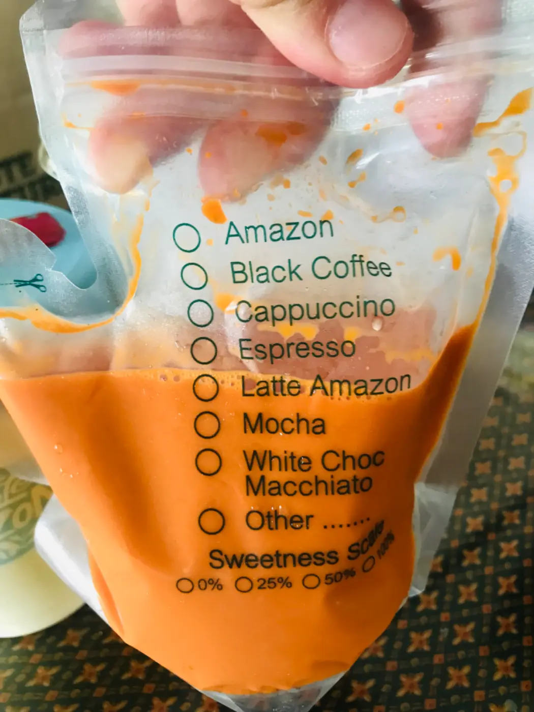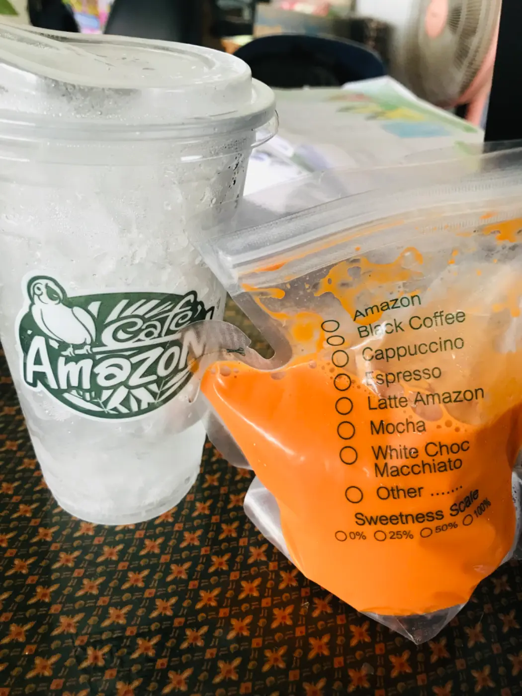 ซึ่งหากว่าเรานั้นมีการสั่งแยก จะมีถุงแบบนี้ในการส่งให้ รสชาตินั้นจะประมาณ ว่าหวานมากกว่า กลมกล่อมน้อยกว่า คงจะยากเหมือนกันในการกินหากว่าเรานั้นจะกินในทุกเช้าเพราะว่าแก้วของเรานั้นตกแก้วละ 50 บาท หากว่าเรานั้นกินห้าวัน ราคาในการกินคือ 250 ซึ่งถือว่าแพงมาก ในการกิน เราจะต้องมีการเปลี่ยนมากินในราคามี่ลดลงมาหน่อย แต่รู้สึกว่าตัวเองนั้นติดเจ้าคาเฟอีน