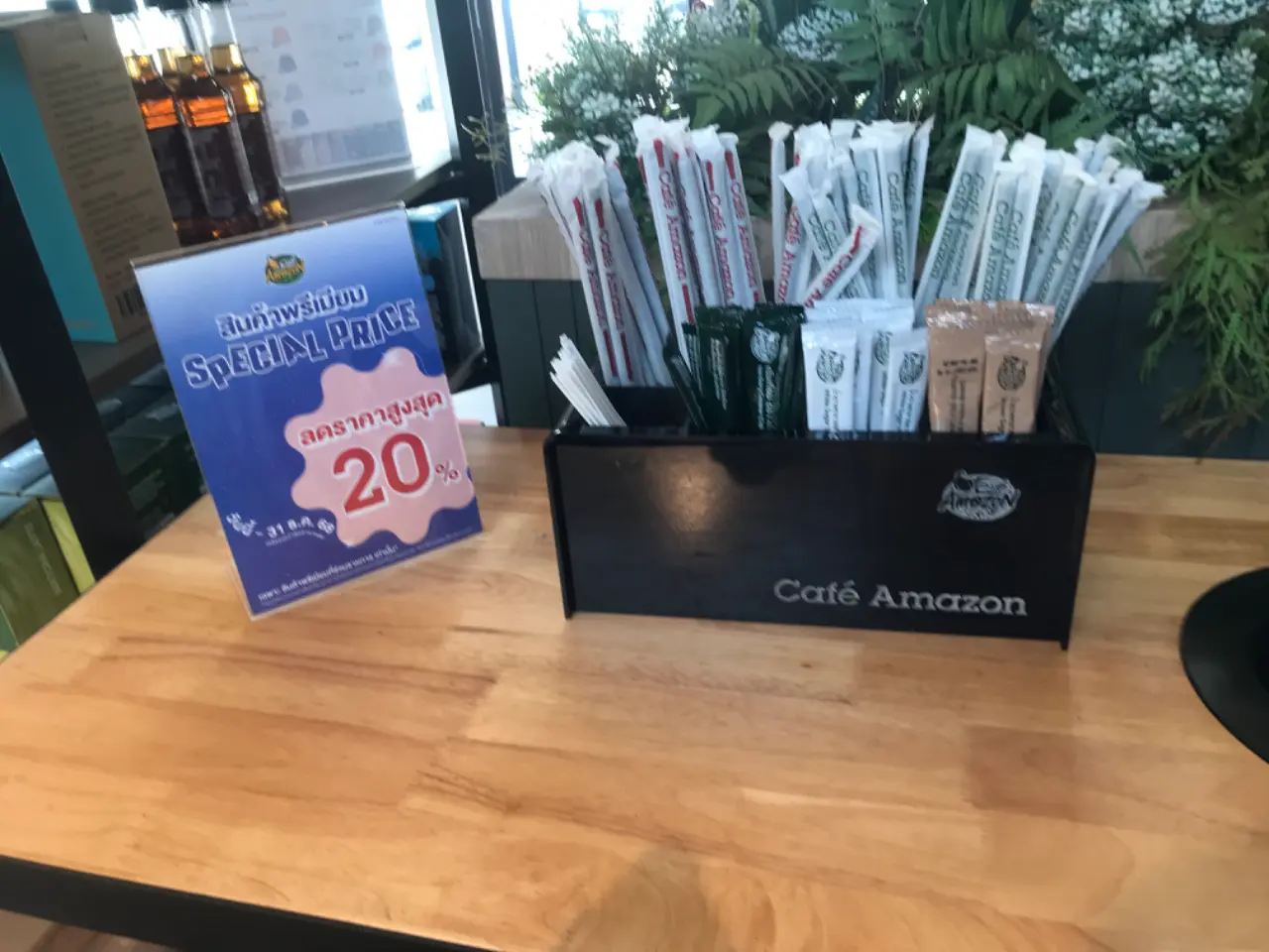 หลังจากที่ได้แล้วเราเองก็เดินมาในส่วนของตรงสี้เพื่อที่จะเลือกในส่วนของ หลอด น้ำตาล หรืออะไรที่เราต้องการนั้นหยิบได้ เหลือบไปเห็นอีกแล้วในส่วนของ ลดราคาแก้วที่สวยงาม แต่ว่าอะไรที่ไม่ได้ฟรียากเหมือนกันที่เรานั้นจะได้จับจองเพราะว่าแก้วนั้นเยอะมากเหลือเกิน