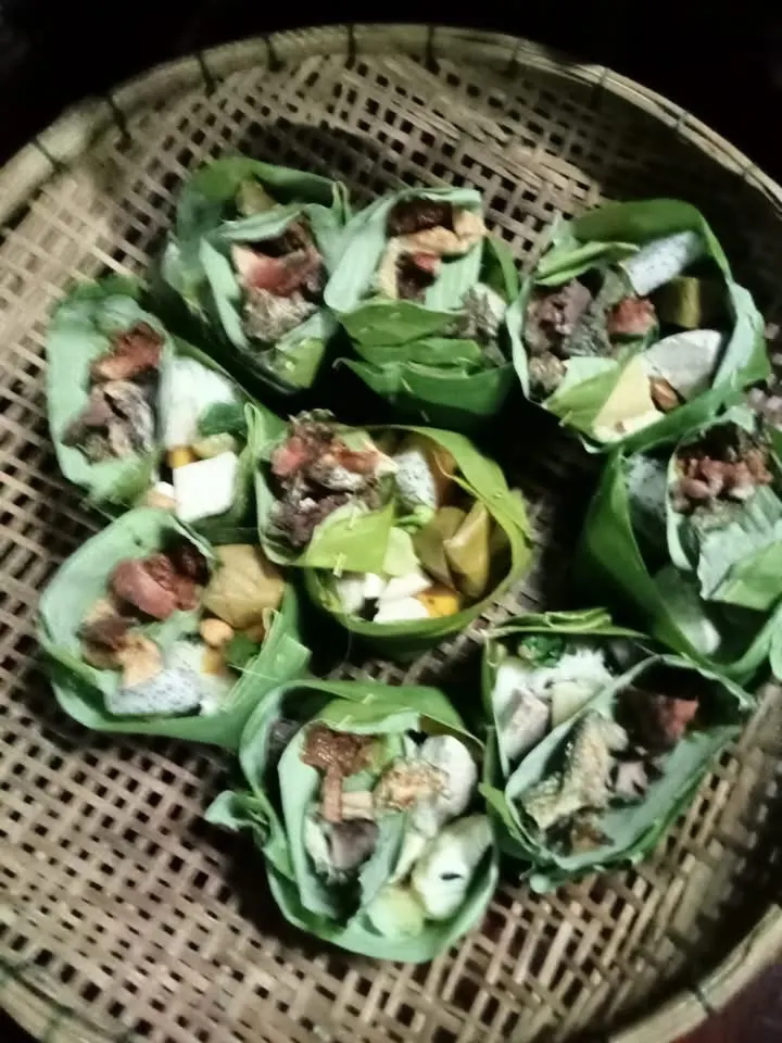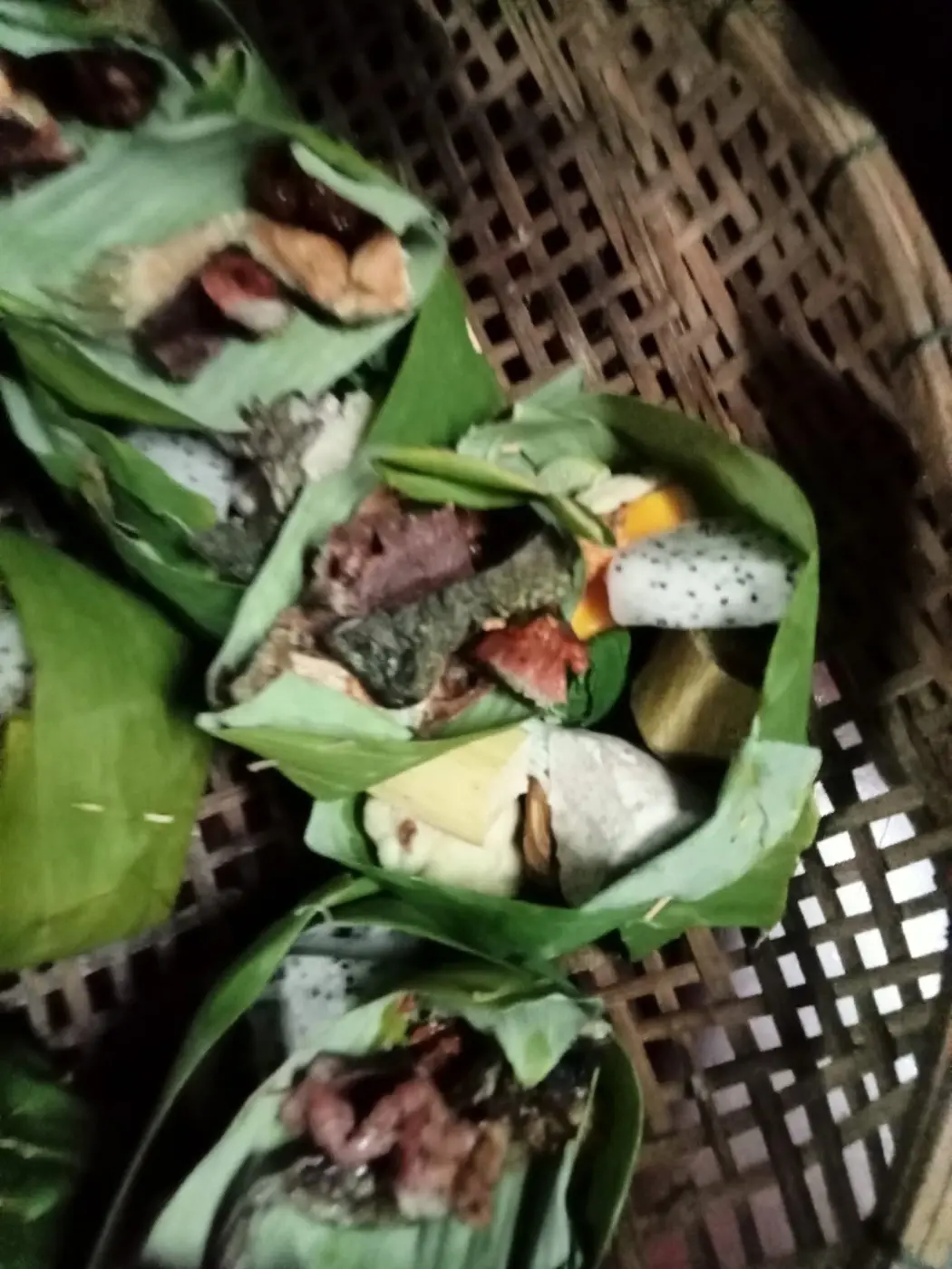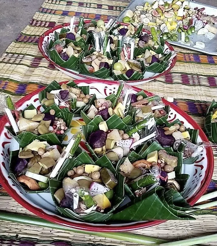 อาหารหลายอย่างทำให้เรานั้นสามารถที่เลือกใส่ไปในถาดเพื่อที่จะเรียงและจัดใส่กระทงใบตอง