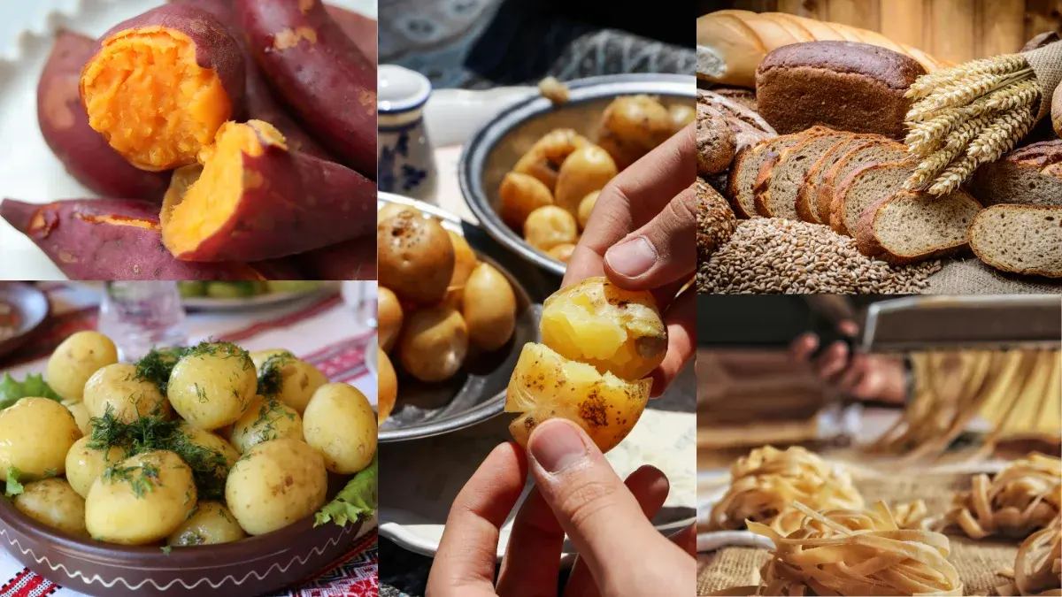 2.อาหารกลุ่มคาร์โบไฮเดรต ควรเป็นคาร์โบไฮเดรตที่ให้ทั้งพลังงาน และ เส้นใยเพื่อช่วยให้สามารถดูดซึมนำไปใช้งาน รวมถึงกำจัดออกจากร่างกายได้โดยง่าย เช่น พืชตระกูลหัวต้มอย่างมันฝรั่ง แต่ไม่ควรนำไปปรุงหรือผ่านกรรมวิธีที่ใช้เนยหรือชีส นอกจากนี้คาร์โบไฮเดรตไม่ขัดสีก็เป็นอีกหนึ่งตัวเลือกที่เหมาะสม เช่น ขนมปังโฮลวีท เส้นพาสต้าโฮลวีท