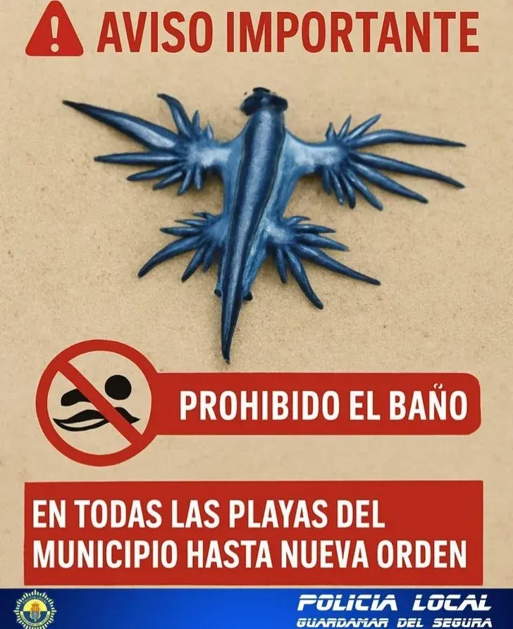 สเปนพบ "มังกรน้ำเงิน" สิ่งมีชีวิตหายากริมชายฝั่ง จนต้องรีบอพยพนักท่องเที่ยว
