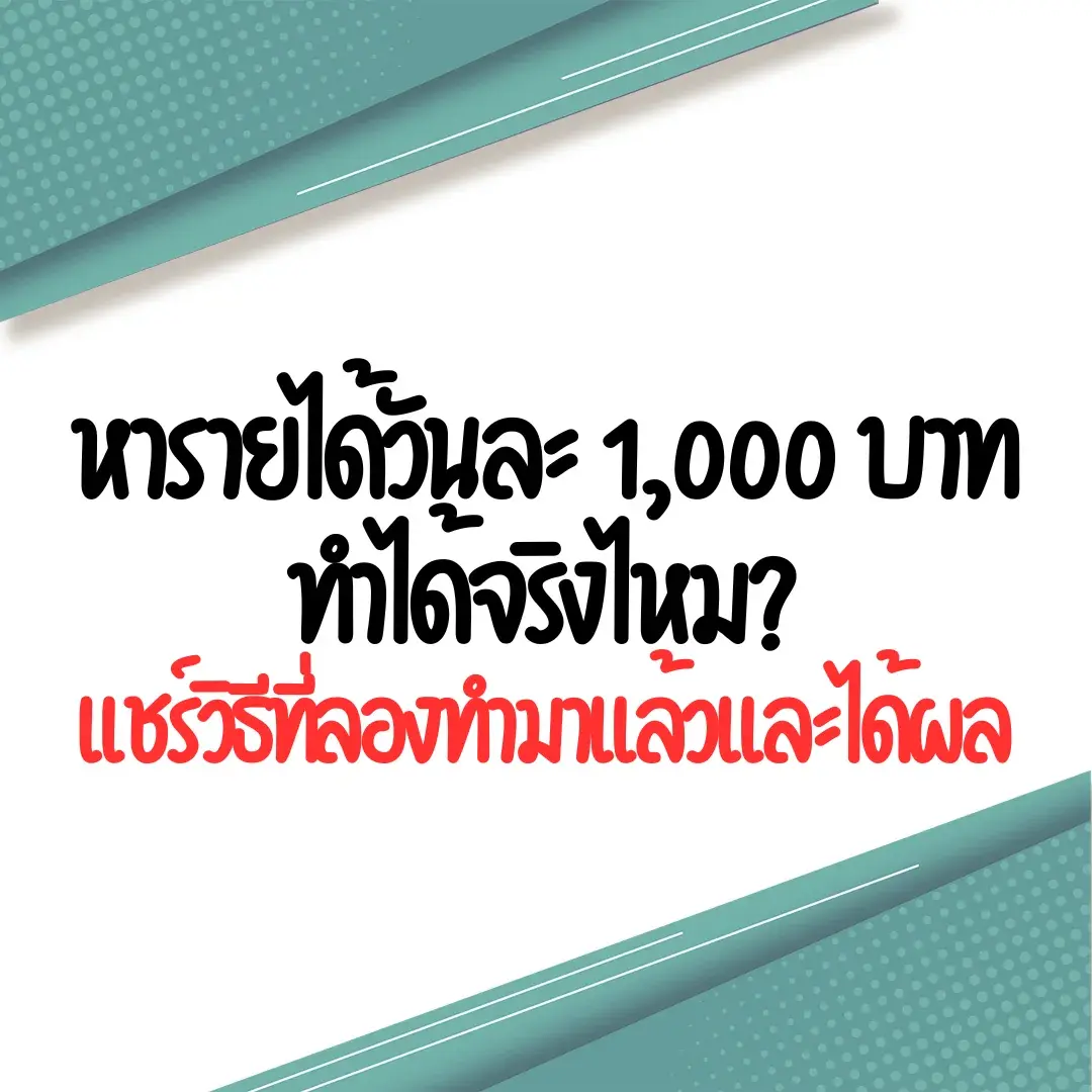 หารายได้วันละ 1,000 บาท ทำได้จริงไหม? แชร์วิธีที่ลองทำมาแล้วและได้ผล