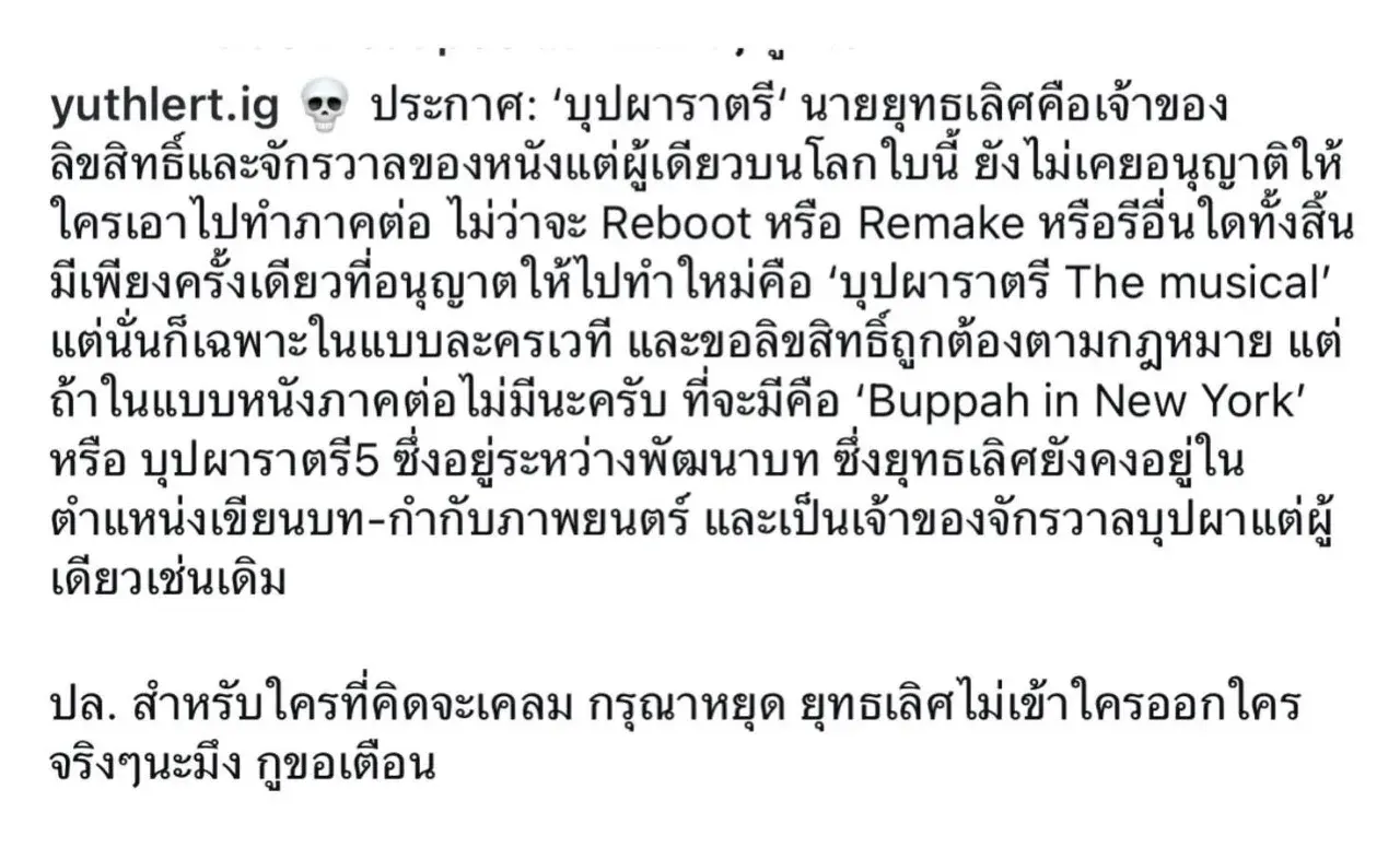 #ต้อมยุทธเลิศ ประกาศทวงเครดิต “บุปผาราตรี” กลางไอจี