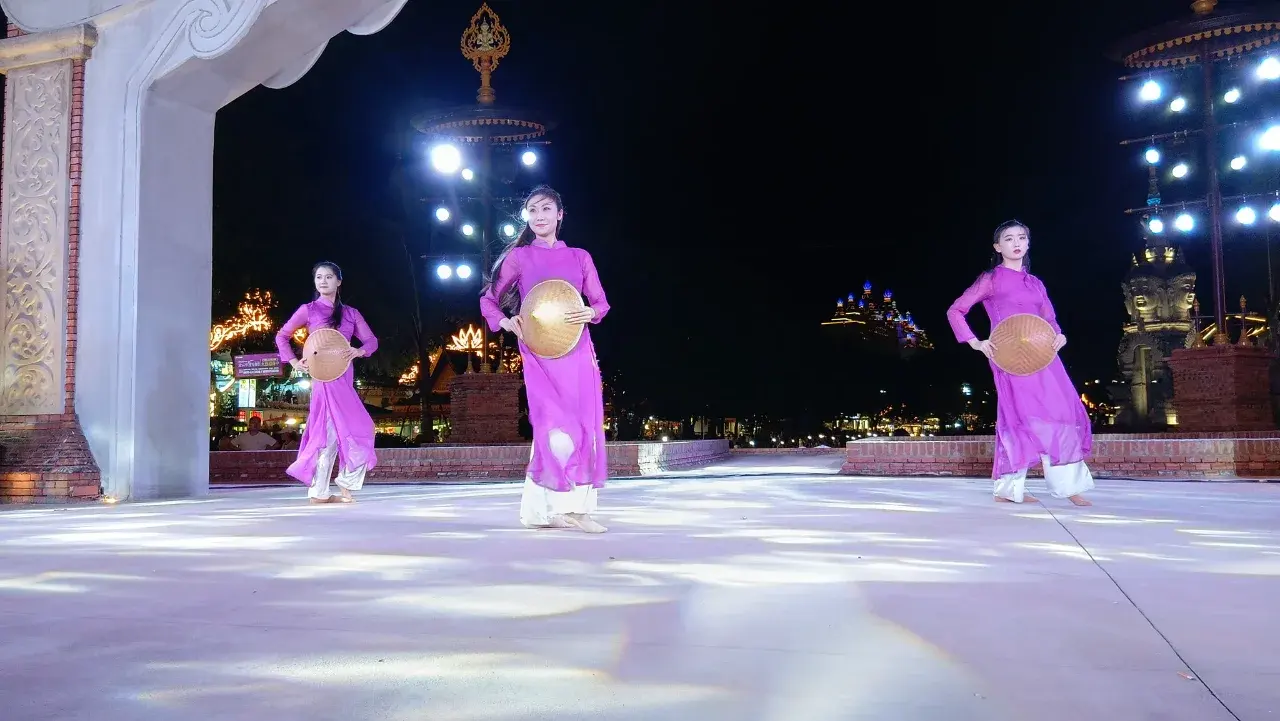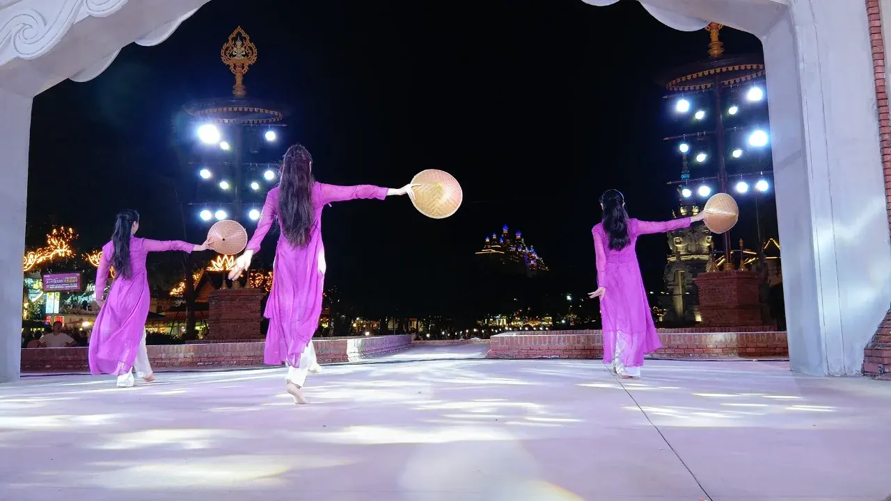 การร่ายรำหมวกนั้นทำให้เรานั้นได้เห็นในความอ่อนช้อยของหญิงสาว ที่ไม่ว่าจะเดินหรือทำอะไรจะต้องมีความเรียบและช้า ชาวเวียดนามนั้นชุดที่ใส่จะค่อนข้างจะเรียบร้อย รวมถึงกางเกงที่ใส่จะยาวจนปิดมิดที่เท้า