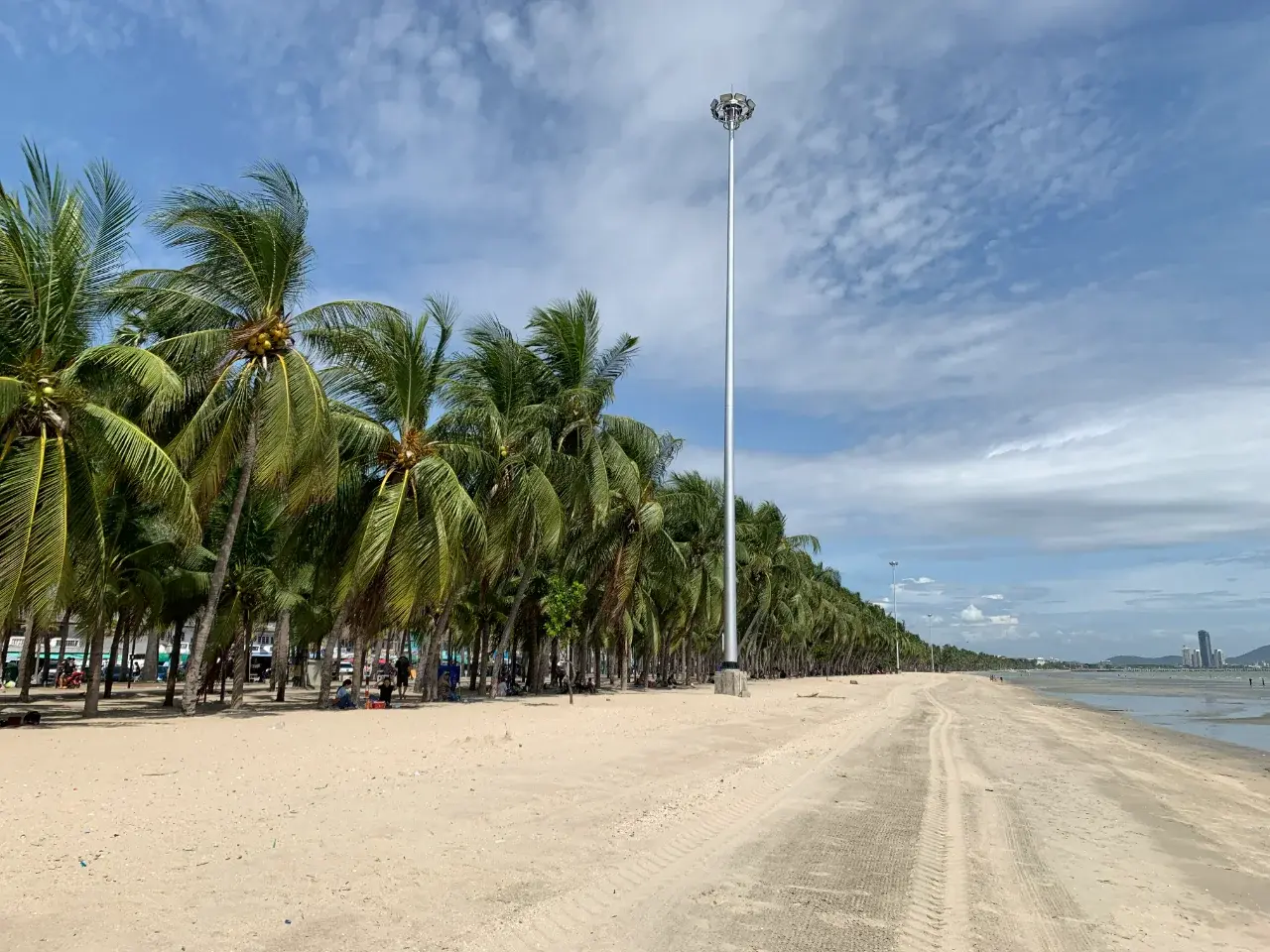 ต้นมะพร้าวที่ปลูกเรียงรายตลอดแนวชายหาดทรายขาวสะอาดทอดยาวนั้นได้สร้างบรรยากาศที่ร่มรื่นและผ่อนคลาย ซึ่งเหมาะสำหรับที่เพื่อนๆ จะพาครอบครัวไปเพลิดเพลินชมวิวทะเลและสัมผัสลมทะเลเย็นๆ สบายๆ