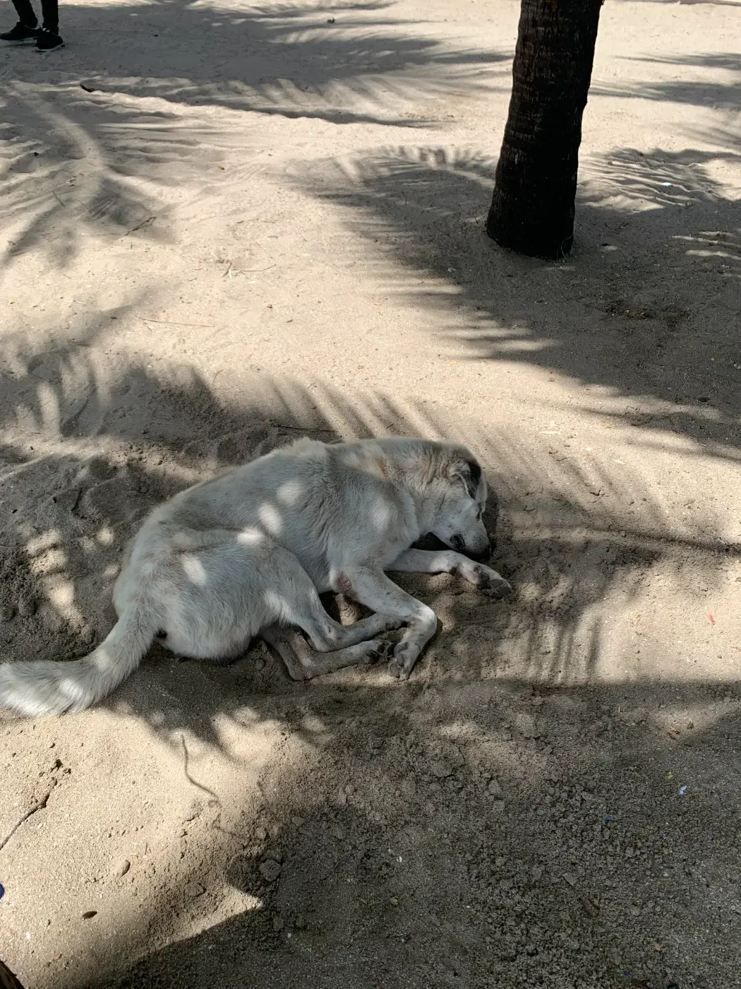 ดูเหมือนว่าเจ้าน้องหมาจรจัดตัวนี้คงจะนอนหลับสบายใต้ร่มเงาของต้นมะพร้าว น่าอิจฉาจริงๆ