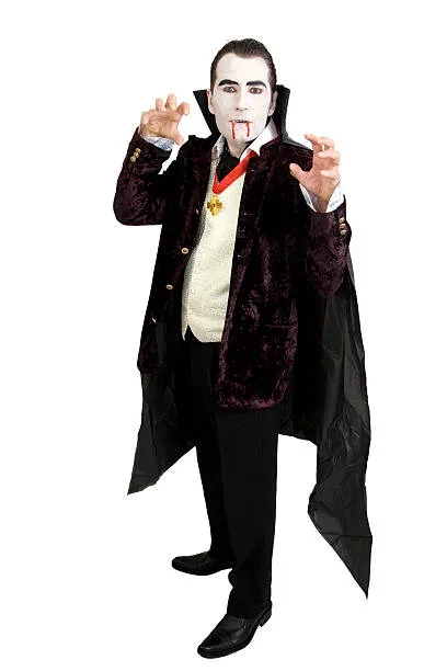 ไม่ใช่ผีกระจอกๆโดยเฉพาะ เฉพาะการแต่งตัวของแดร็กคิวลาคงจะคุ้นๆหน้าเนี่ยมันดูแล้วมันมีสง่าราศีสูตรผูกไทด์มีผ้าคลุมหลังดูภูมิฐานนะครับไม่เหมือนผีหลายๆประเทศนะครับที่จะแต่งตัวเป็นแบบพวกผ้าพันศพหรือว่าห่มสไบเฉียงอะไรต่างๆนานานะครับ