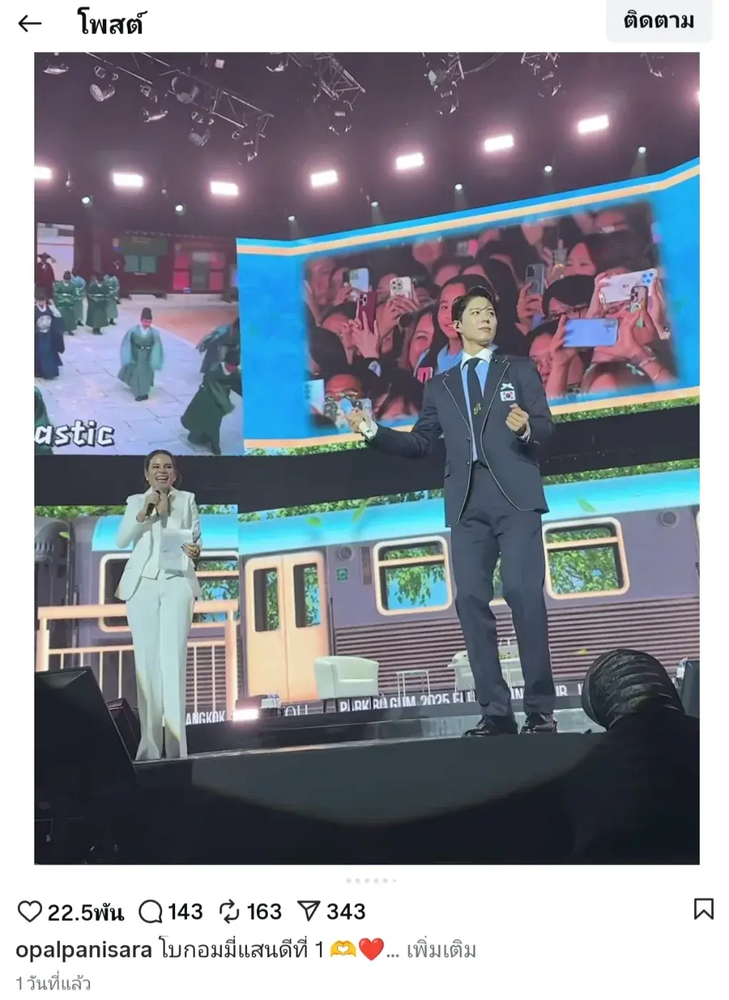 ฟินกันไปตาม ๆ กัน กับแฟนมีตติ้งของพระเอกหนุ่มเกาหลีใต้ พัคโบกอม เมื่อวันที่ 24 สิงหาคมที่ผ่านมา งานนี้ได้ โอปอล์ ปณิศรา ทาเป็นพิธีกรอีกครั้ง หลังจากที่เคยเจอกันครั้งแรกเมื่อปี 2019
