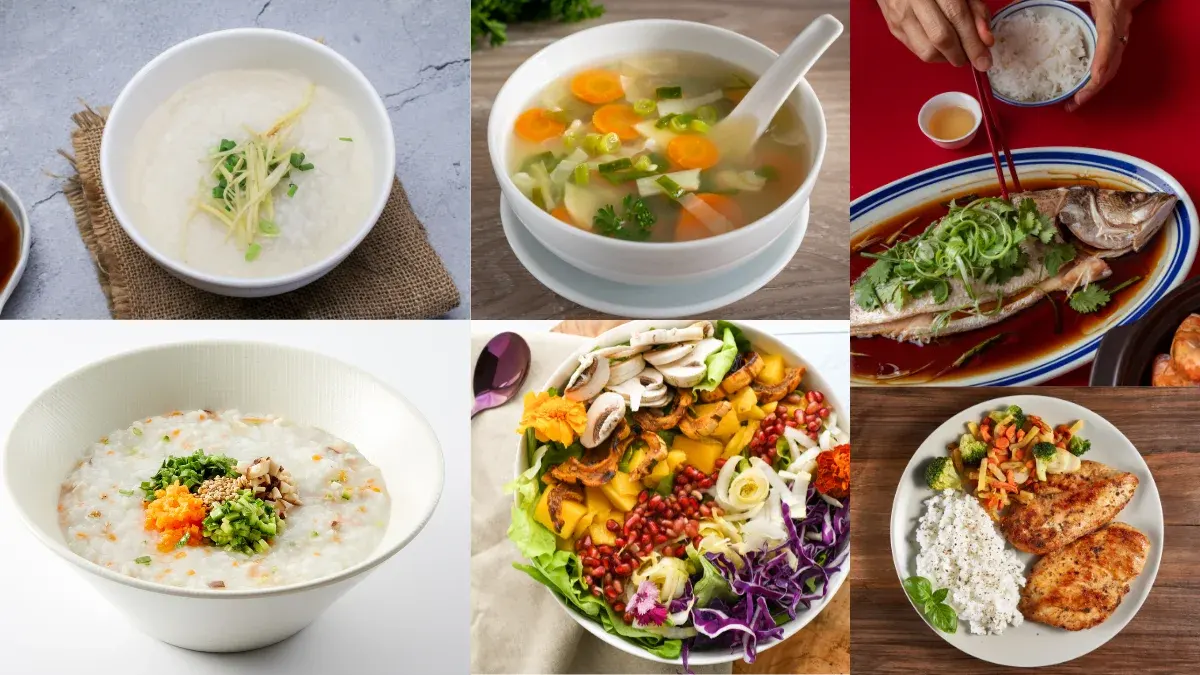 9.วางแผนการกินอาหารในมื้อต่อไป ควรเลือกอาหารเบา ๆ เช่น ข้าวต้ม โจ๊ก สลัด แกงจืด เนื้อปลา อกไก่ เพื่อไม่ให้ระบบย่อยอาหารทำงานหนักอย่างต่อเนื่อง และ ไม่ทำให้ได้รับพลังงานส่วนเกินที่มากจนกลายเป็นไขมันสะสม