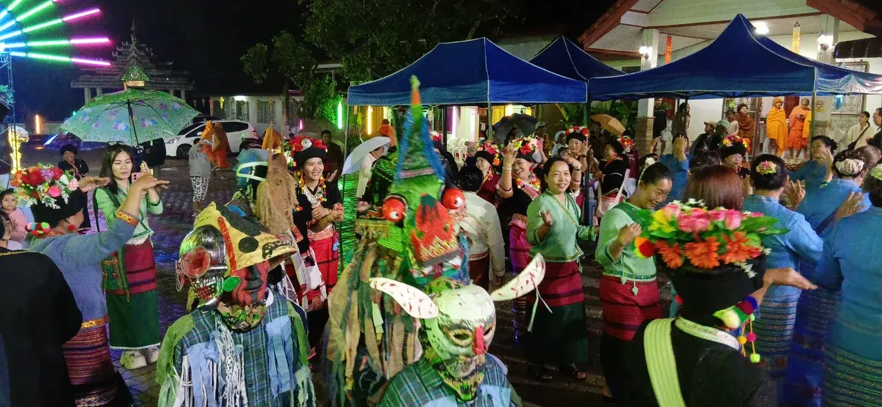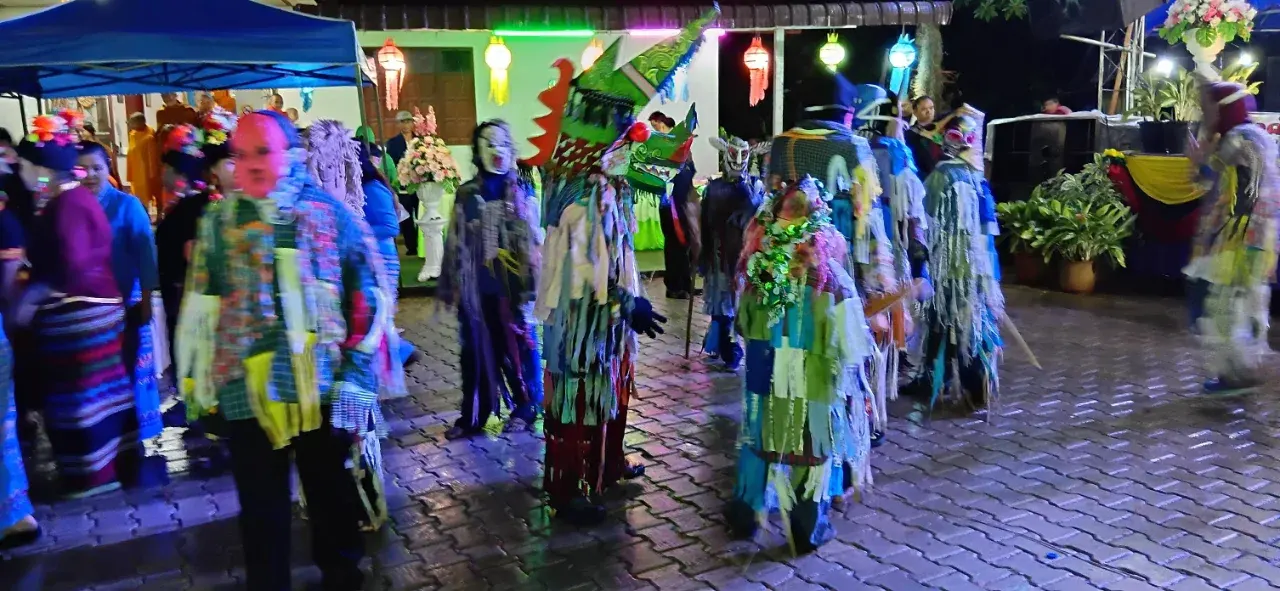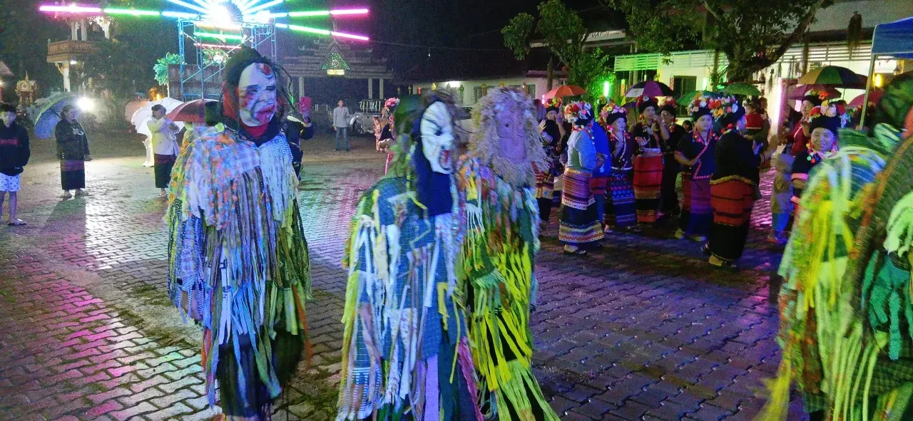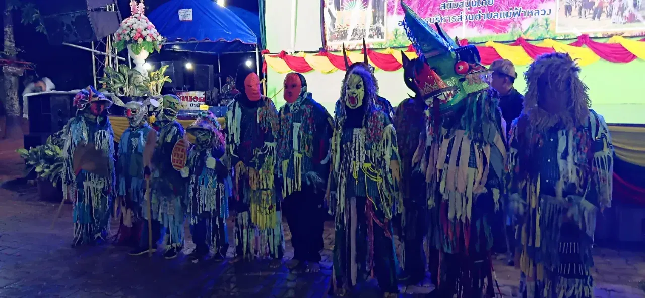 ต่อมาในส่วนที่แตกต่างและแปลกตาคือในการแต่งกายของ คนหน้าผี หรืออาจจะเป็นสัตว์ประหลาด ในความเชื่อน่าจะเป็นผีสางที่ออกมาร่ายรำและแสดงด้วยกัน มีปีศาจยุง ผีสางที่ออกมาร่ายรำ เหมือนว่าที่นี่คงจะไม่กลัวผีเพราะว่าอาศัยอยู่ร่วมกับผีอย่างสุขสำราญกัน
