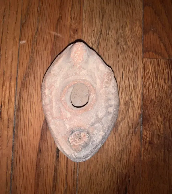 4. ฉันมีสิ่งของโบราณแปลก ๆ ชิ้นหนึ่ง มันมีรูตรงกลางรูหนึ่งรู และมีรูเล็ก ๆ ใต้รูนั้น ฉันไม่รู้ว่าสิ่งนี้คืออะไร ?