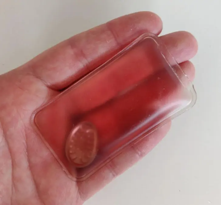 10. ถุงพลาสติกขนาดเล็กที่มีเจลสีแดงและแผ่นโลหะอยู่ข้างใน ฉันสงสัยว่ามันคืออะไร ?