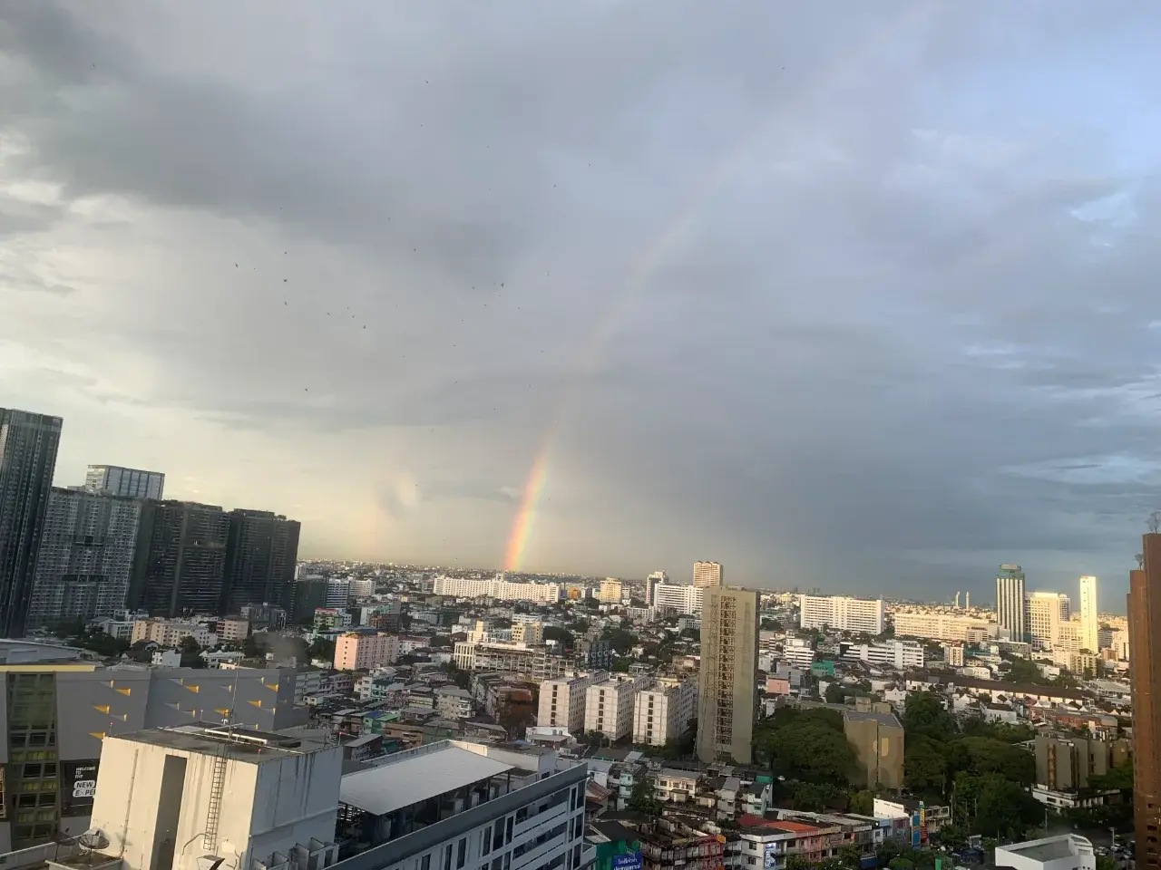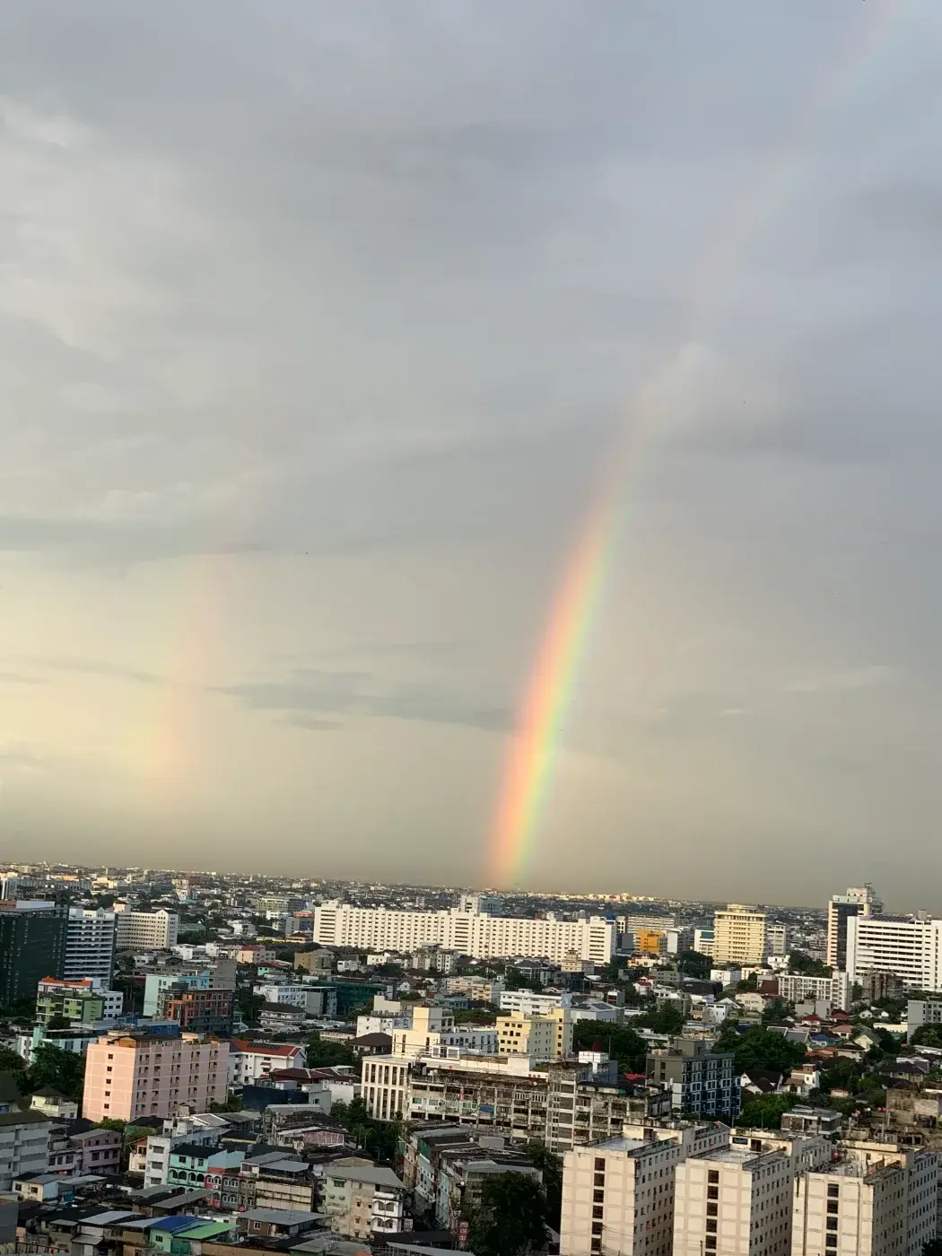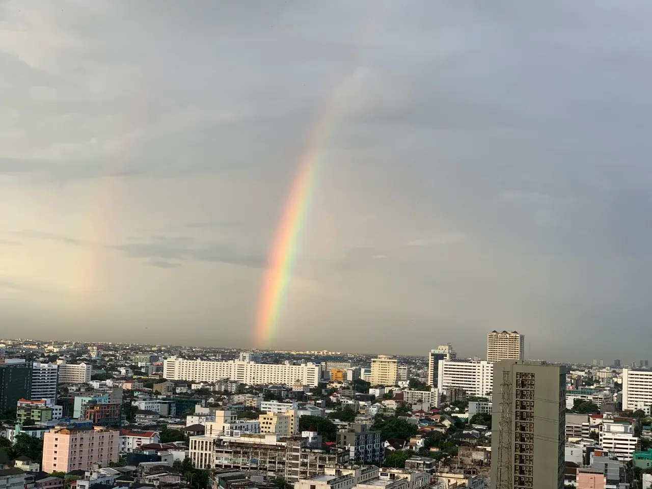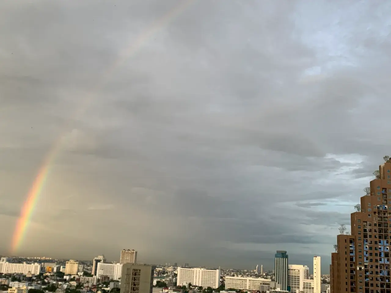 รุ้งกินน้ำ สร้างทัศนียภาพอันงดงามเหนือตึกสูงๆ ในกรุงเทพฯ ได้อย่างน่าทึ่ง