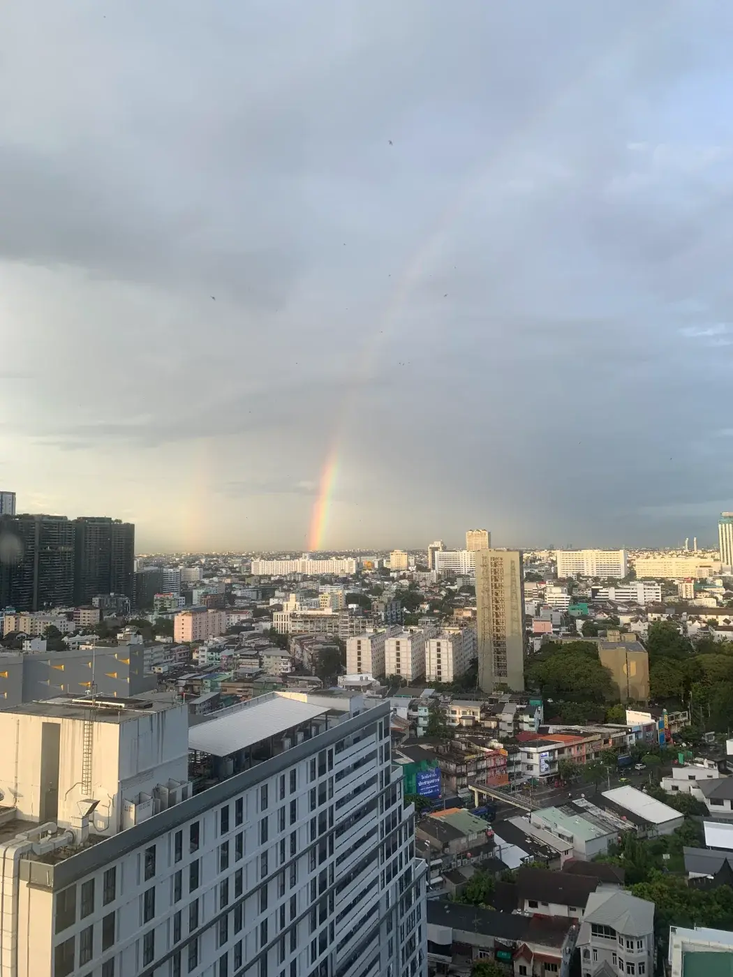 ผู้โพสโชคดีที่ได้เห็นรุ้งกินน้ำสวยๆ ซึ่งเป็นรุ้งกินน้ำคู่ (รุ้งกินน้ำเล็กและรุ้งกินน้ำใหญ่) ตอนที่ผู้โพสยืนอยู่ที่ชั้น 20 ของคอนโดมิเนียม