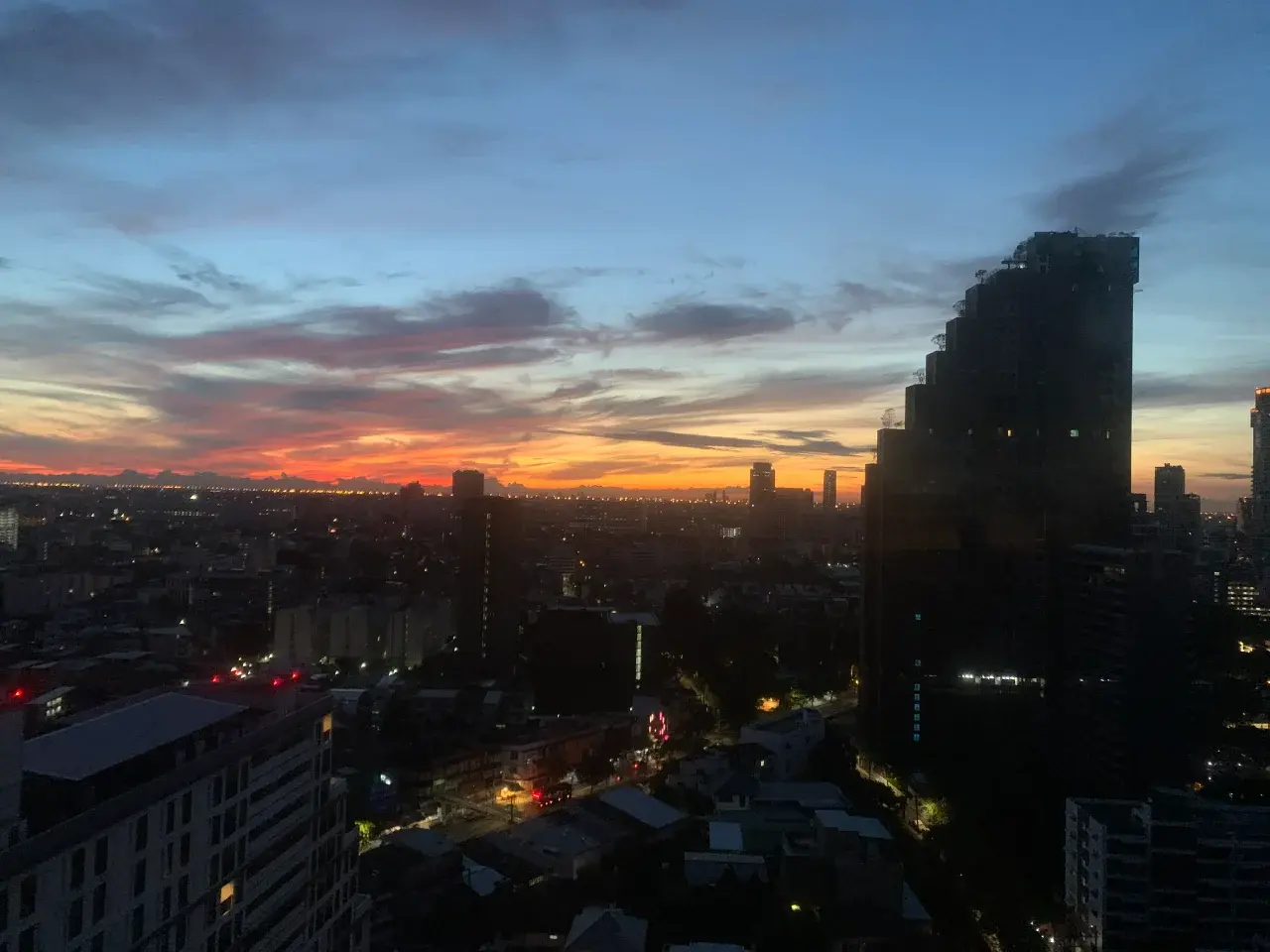 ไม่ใช่แค่รุ้งกินน้ำที่ผู้โพสชอบชมเวลาอยู่ที่คอนโดมิเนียม แต่พระอาทิตย์ขึ้นเหนือกรุงเทพ ก็เป็นวิวที่ผู้โพสชอบที่สุดด้วยเช่นกัน