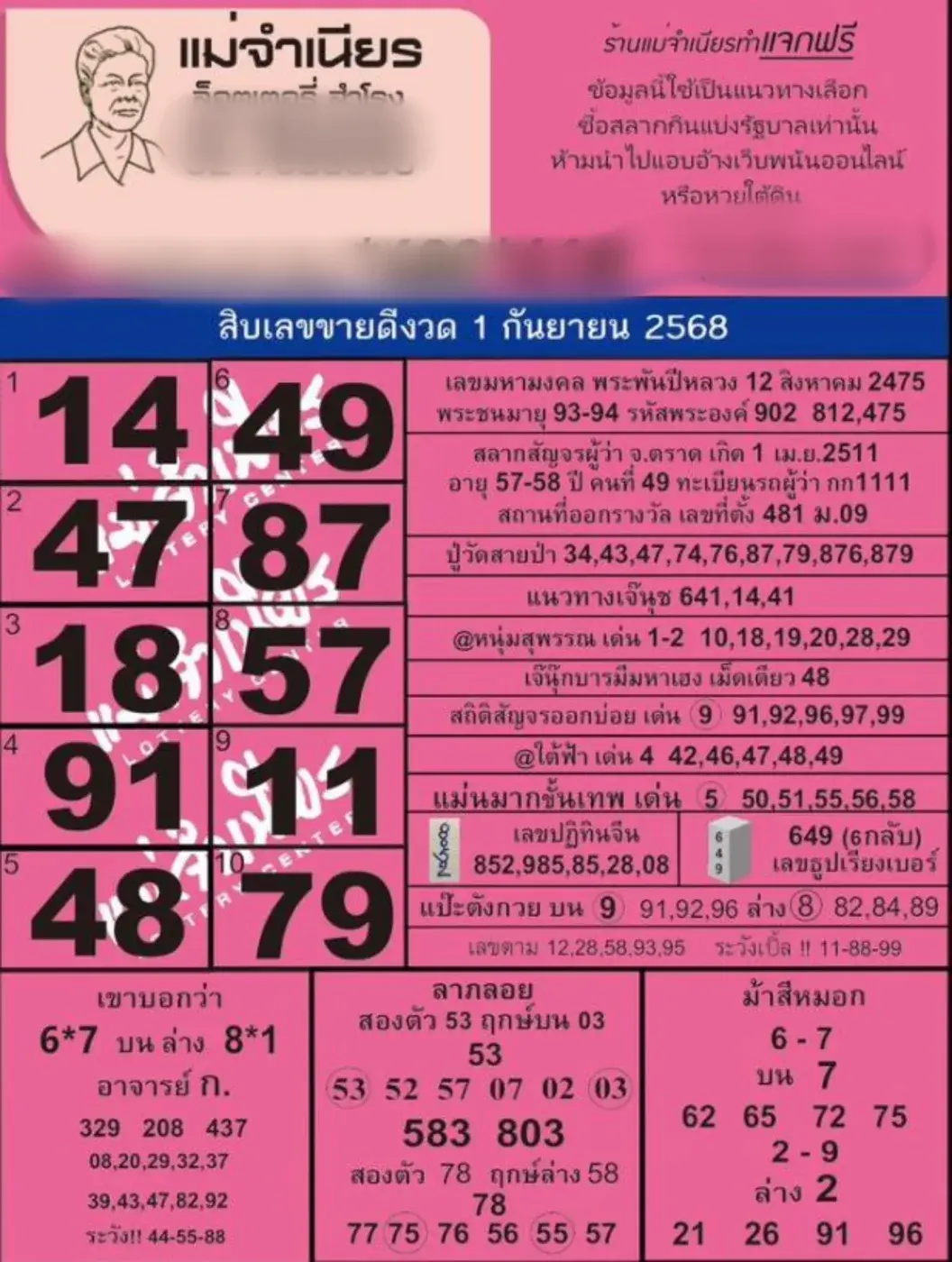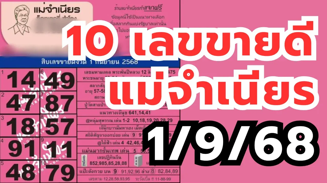 สิบเลขขายดีแม่จำเนียร งวด 1/9/68