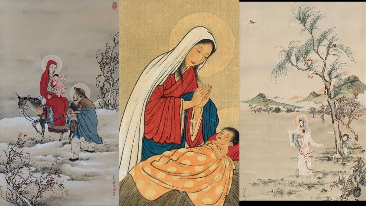 ลองสังเกตดูดี ๆ ภาพวาดพระแม่มารีในศิลปะจีนมักมีความอิ่มเอิบ อบอุ่น และอ่อนโยนดังมารดา สวมชุดจีนโบราณ ห่มผ้าแบบฮั่น และยืนในท่าที่ผู้ชมชาวจีนคุ้นเคย ทว่าจุดที่ทำให้แปลกตาคือวงรัศมีและการอุ้มทารก ซึ่งสื่อถึงพระแม่มารีและพระบุตรนั่นเอง