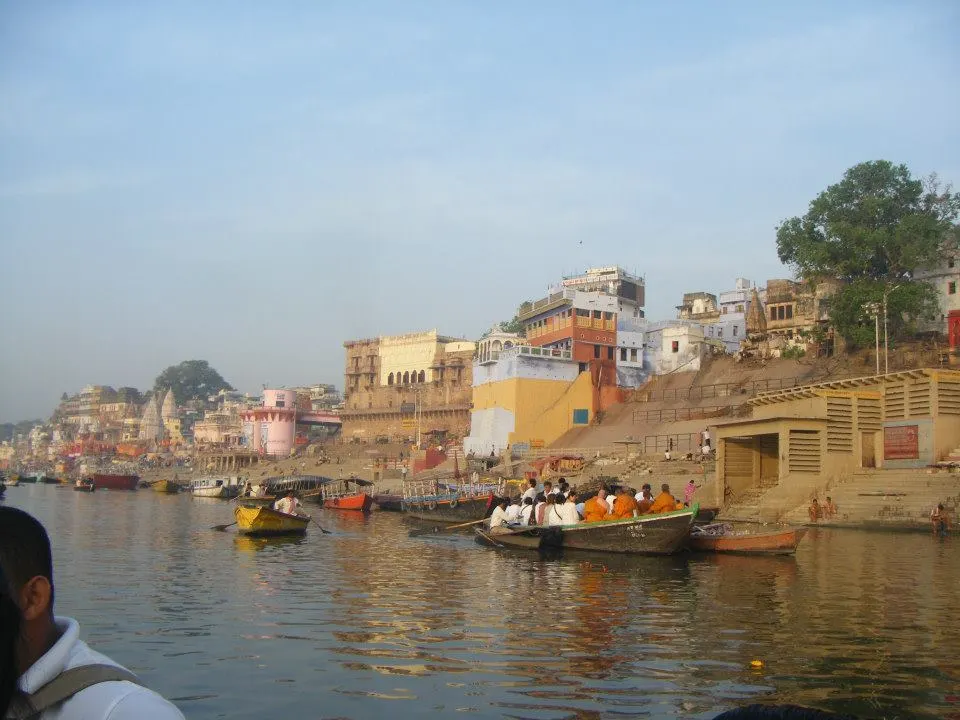 พอถึงท่าเรือนั้นก็จะนับจำนวนเพื่อที่จะลงเรือเพื่อล่องดู ในการชำระบาปของชาวอินเดียตามท่าน้ำ และไปขอขมาแม่น้ำ ด้วยกระทงดอกไม้ บูชาพระอาทิตย์ บางคนก็จะตัดผมใส่ ตัดเล็บใส่ ในกระทง ที่เรานั้นจุดเทียน ในระหว่างทางที่ล่องเรือนั้นก็จะมีเรือของเด็กน้อยมาจับเรือของเรานั้นเป็นระยะเพื่อที่จะขายของบ้าง ขายกระทง ขายดอกไม้ หรือรวมถึงการขอทาน เรานั้นไม่ต้องไปสนใจเพราะว่าเขาจะมาจำนวนมากหากว่าเรานั้นซื้อหรือจ่ายเงิน พยายามไล่ไป
