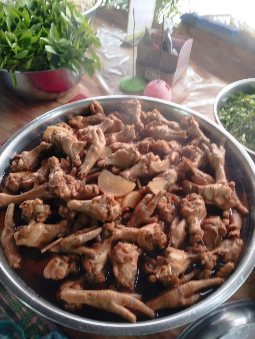มาดูในส่วนของตรีนไก่ น่องไก่นั้นตามที่เราต้องการ เลย หยิบน่องได้ ตรีนได้นุ่มอร่อยมากเพราะว่าตุ๋นตั้งแต่เช้า หากว่าไม่อิ่มก็เติม แต่ไม่ให้ห่อกลับบ้าน อร่อยเต็มที่มาก สุดท้ายแล้วคนเราก็ทานเพียงเพราะอิ่ม แต่ราคานั้นถือว่าเรานั้นบวกใส่เครื่องฟรี ในการหยิบอีกสิบบาท ถือว่าคุ้มมาก ผักสดอร่อยบางวันนั้นมีในส่วนของตับด้วย